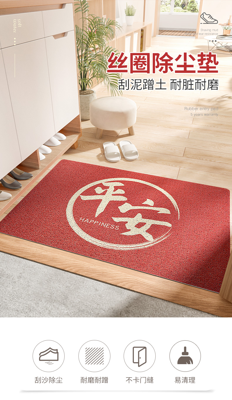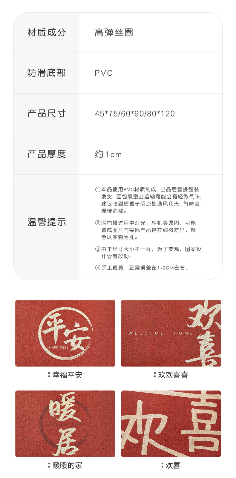 大江地垫地毯丝圈入户垫幸福平安-60*90cm(单位:张) 枫叶色 红色