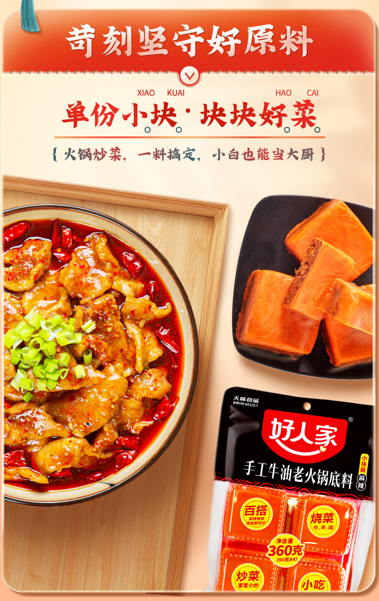 好人家温馨家庭组合装(单位:包)(手工火锅底料360g*1+老坛酸菜鱼调料350g*1+靓汤酸菜鱼调料300g*1+麻婆豆腐调料80g*1+老卤汁-五香味120g*1) 5包装
