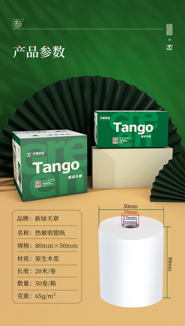 天章(TANGO)新绿天章热敏纸80*50mm收银纸 80mm打印纸收银小票纸50卷 20米/卷 餐饮厨房打单收银机专用纸 白色