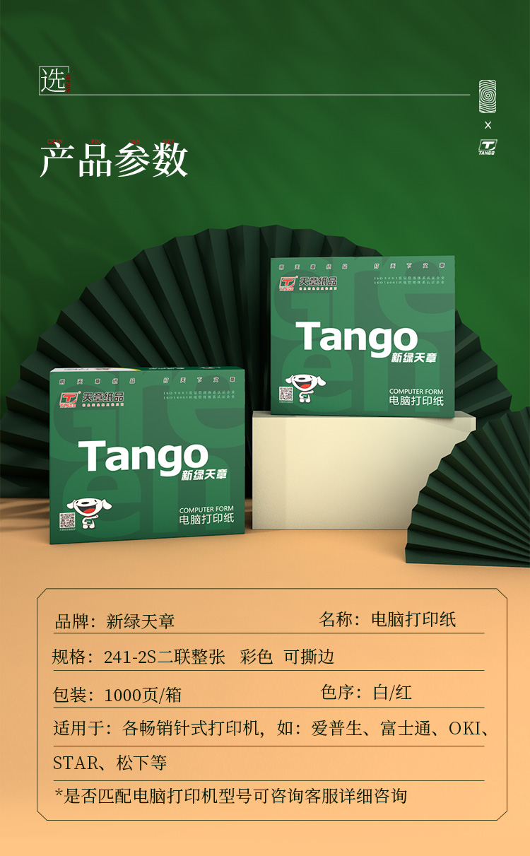 天章TANGO新绿天章打印纸 二联针式彩色打印纸二联整张撕边电脑打印纸二联针式打印机送货单241-2S白红1000页 红白