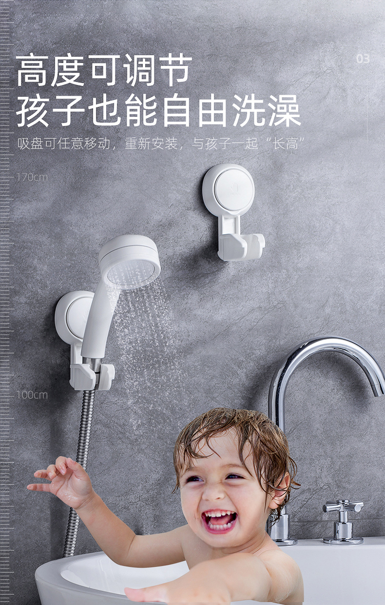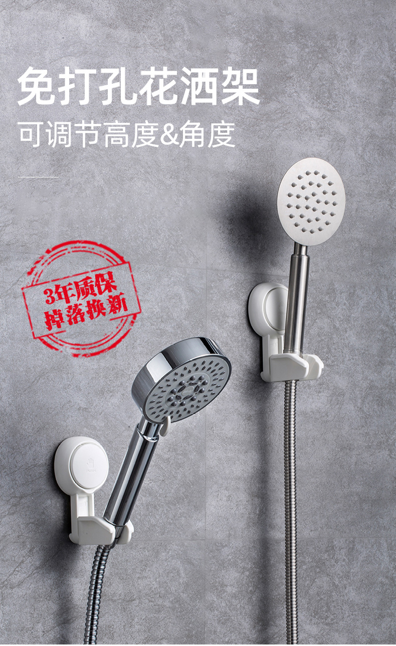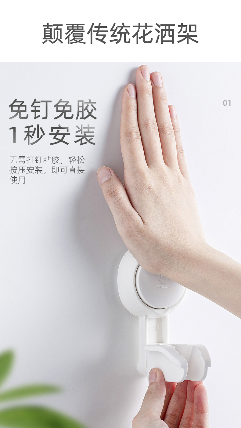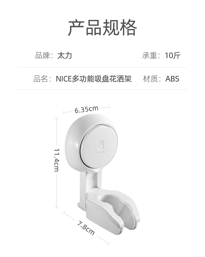 太力花洒支架免打孔淋浴喷头支架吸盘花洒固定器花洒底座莲蓬头1个AW619(单位:个) 白色