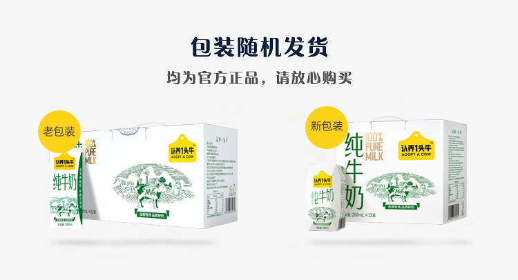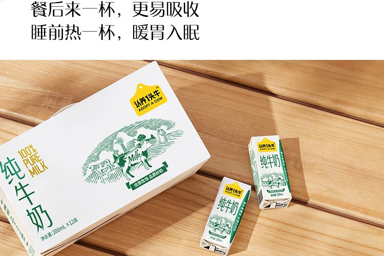 认养一头牛纯奶200ml12入 两提装110101101101 单位:提 自然色