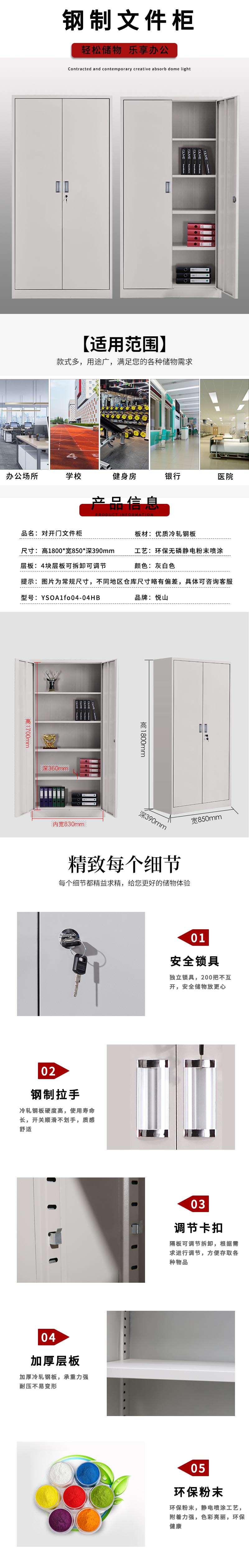悦山 文件柜凭证档案柜 四层凭证文件柜 常规款 灰白色