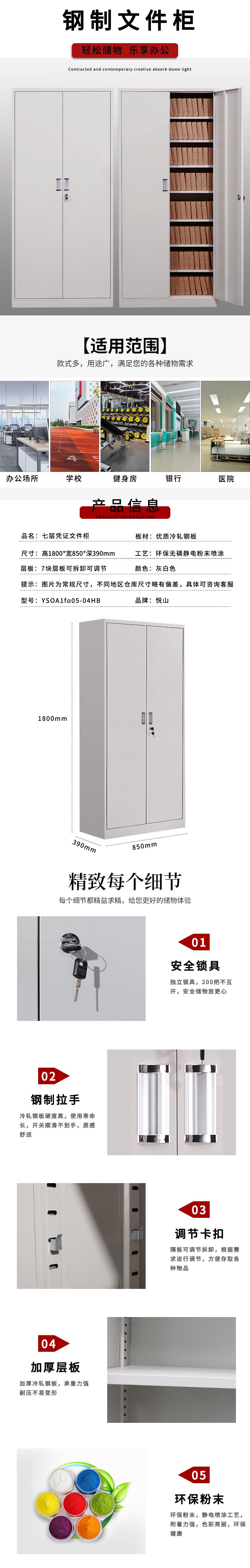 悦山 文件柜钢柜铁皮柜资料柜玻璃门储物柜 七层凭证文件柜 常规款 灰白色