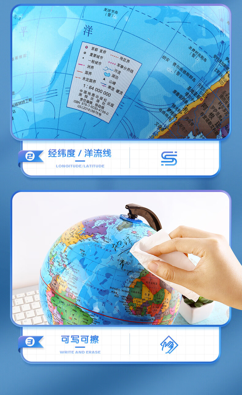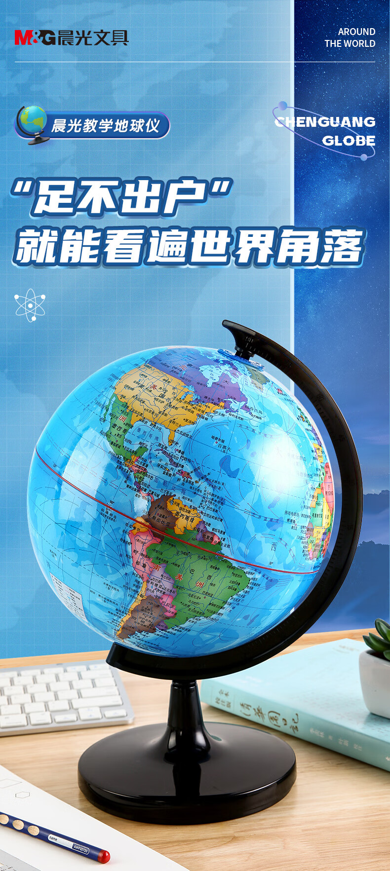 晨光(M&G)文具Ф10.6cm学生政区地球仪 学习教学用品 开学文具儿童礼物办公单个装ASD99818 蓝色
