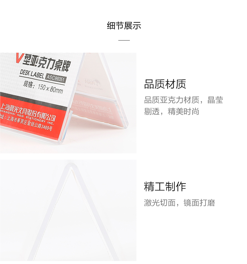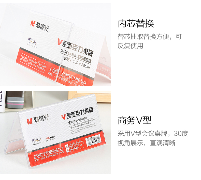 晨光(M&G) ASC99351 150*80mm V型台卡 白色(单位:个)