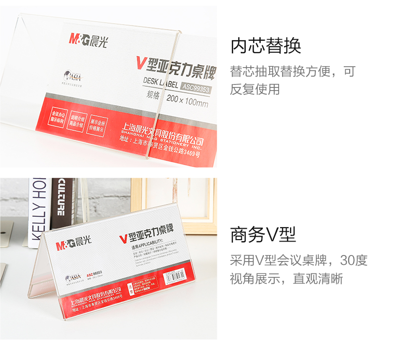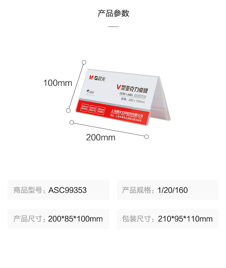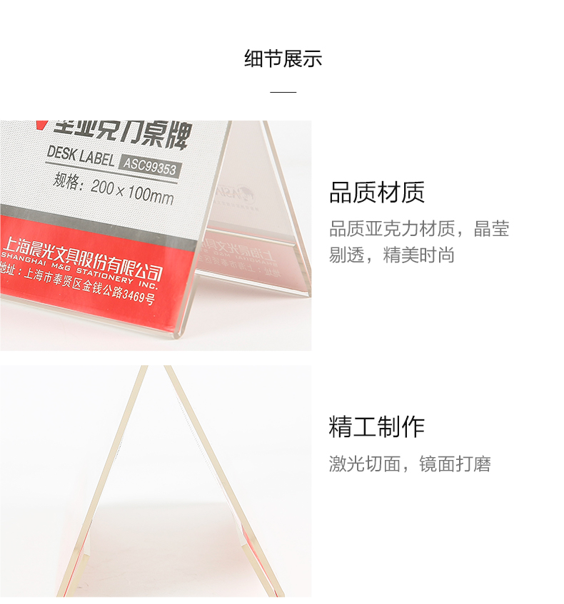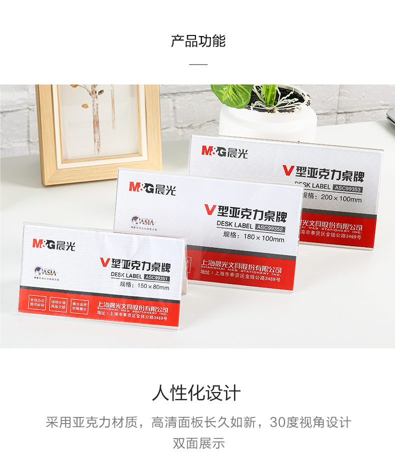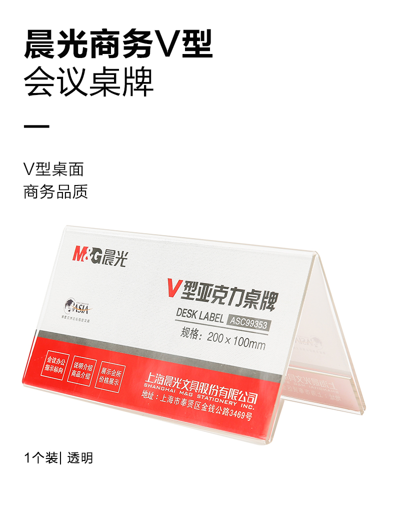 晨光(M&G) ASC99353 200*85*100mm 亚克力桌牌 透明色(单位:个)