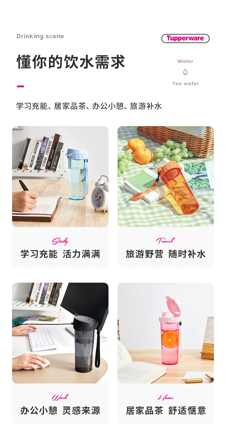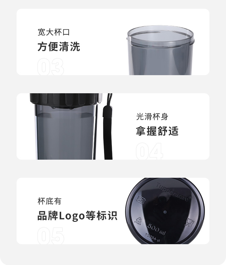 特百惠(Tupperware)茶韵塑料杯 11130453(单位:个) 酷炫黑