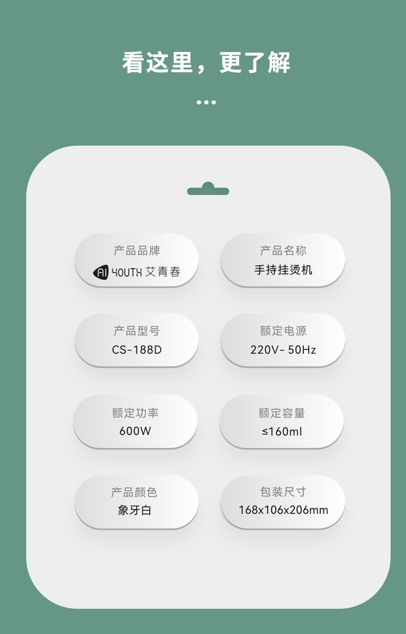 艾青春(AIYOUTH) 手持挂烫机家用蒸汽熨斗小型迷你便携式CS-188D 象牙白