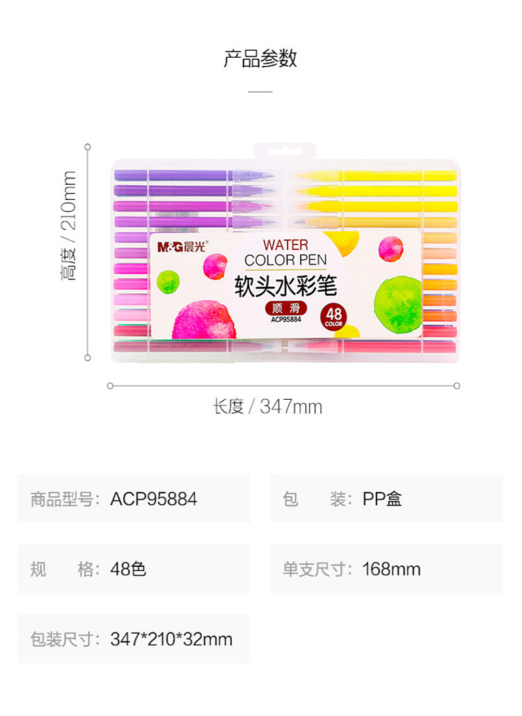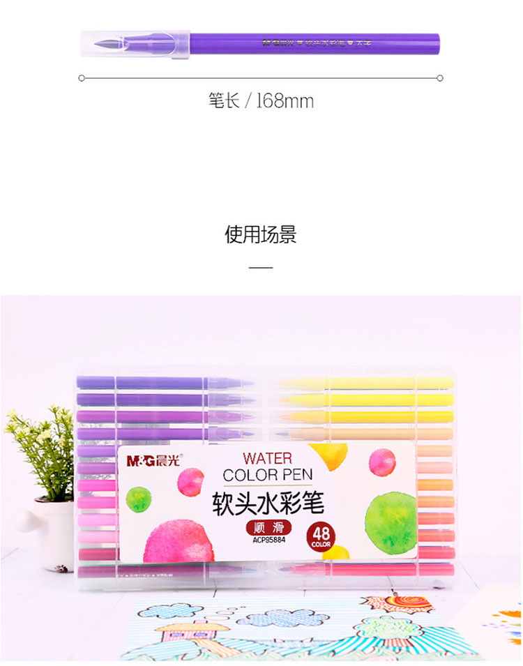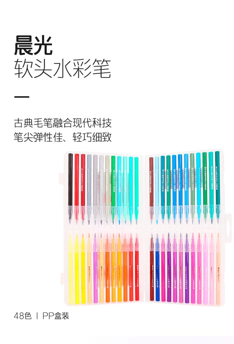 晨光(M&G)文具48色软头水彩笔 儿童绘画涂鸦 美术课必备ACP95884开学礼物 48色/盒 混色