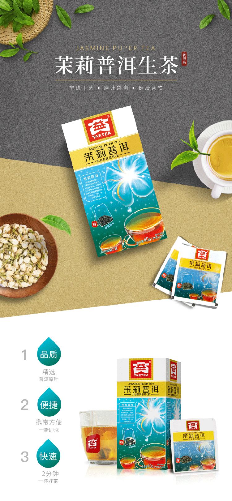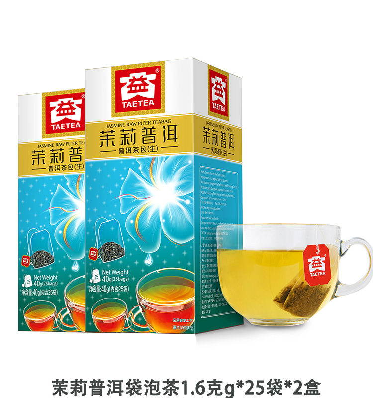 大益茉莉普洱生茶(袋泡茶)40克*2盒装 无色