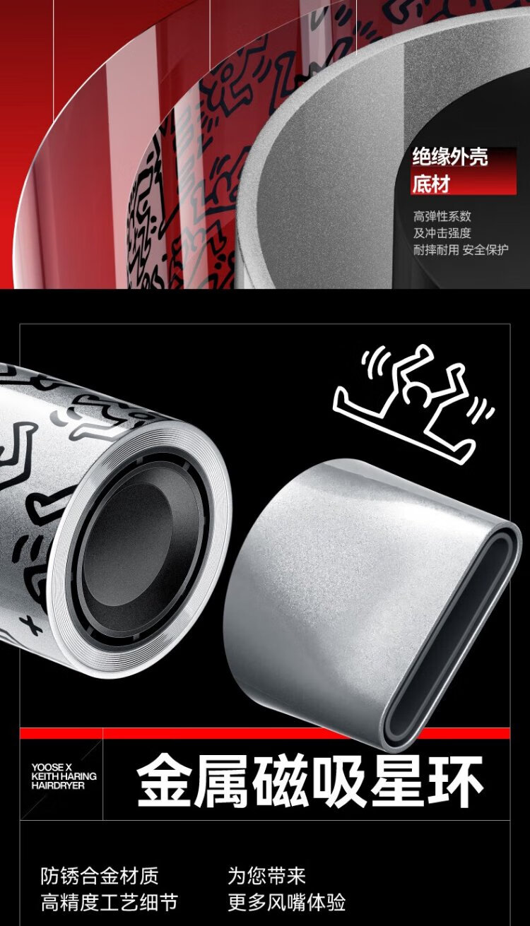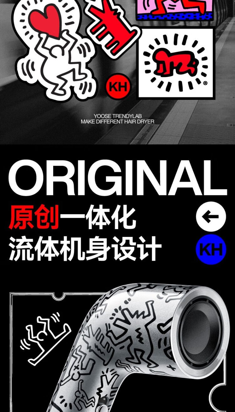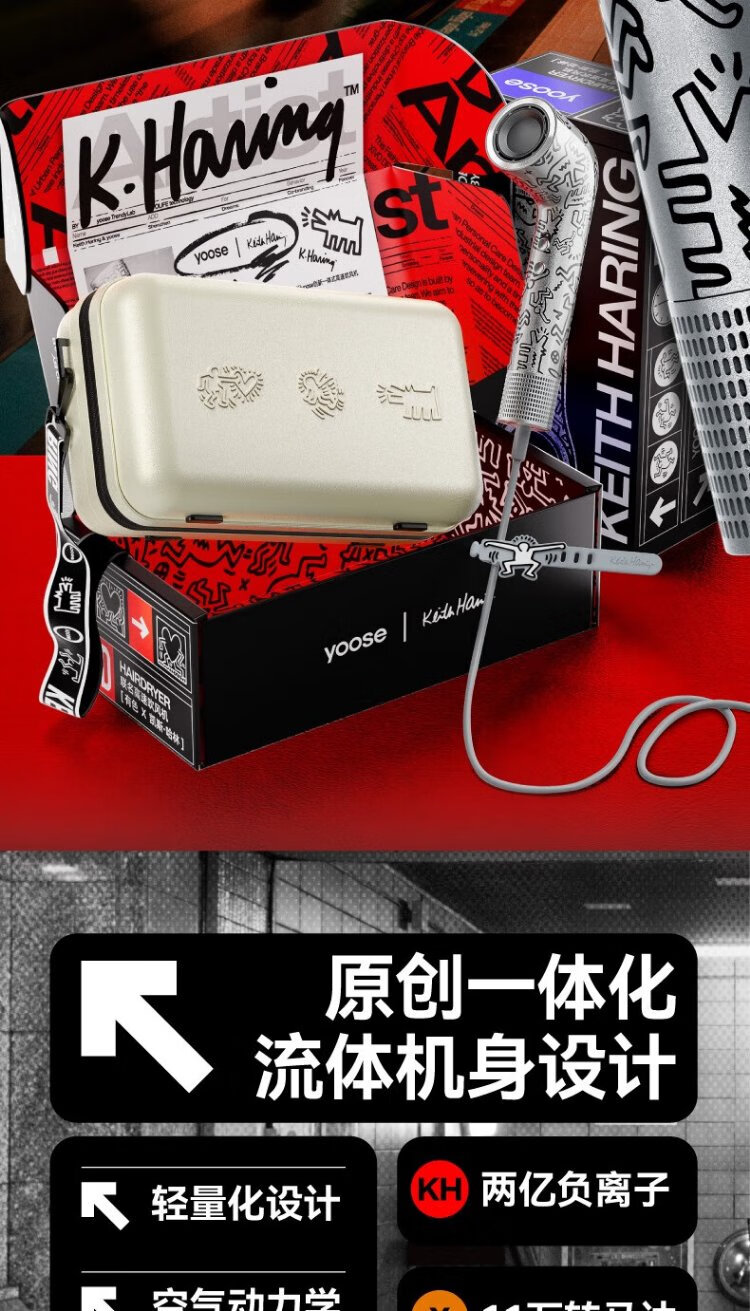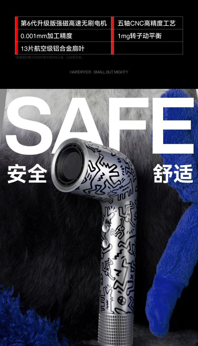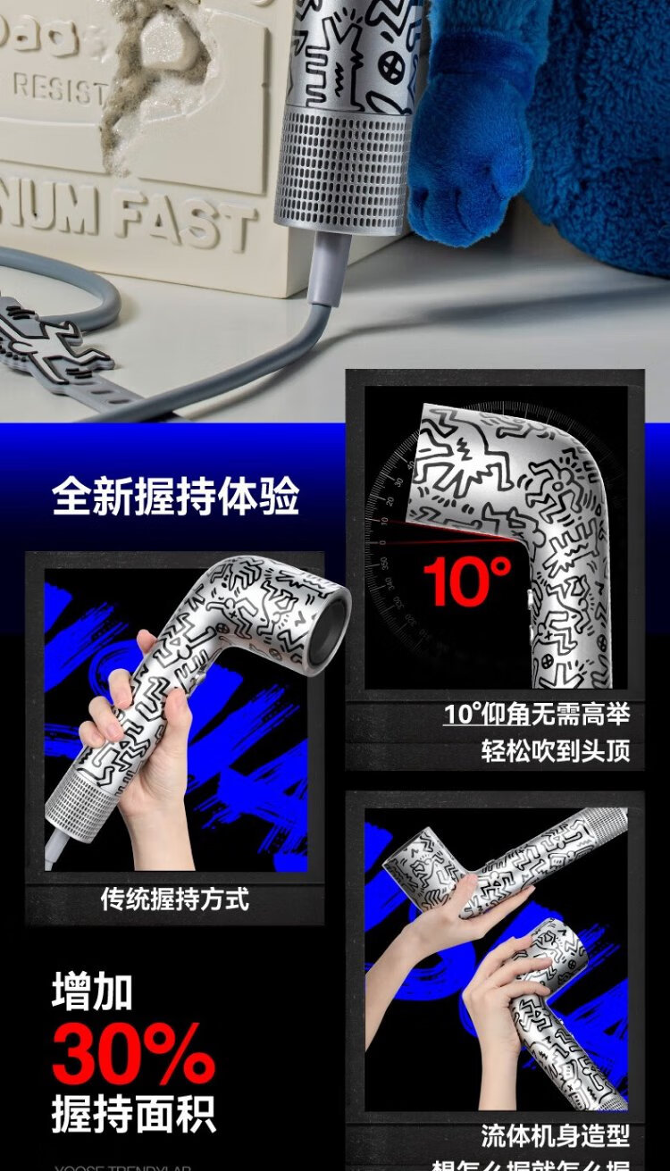 有色yoose哈林S2高速吹风机S2联名款 涂鸦银