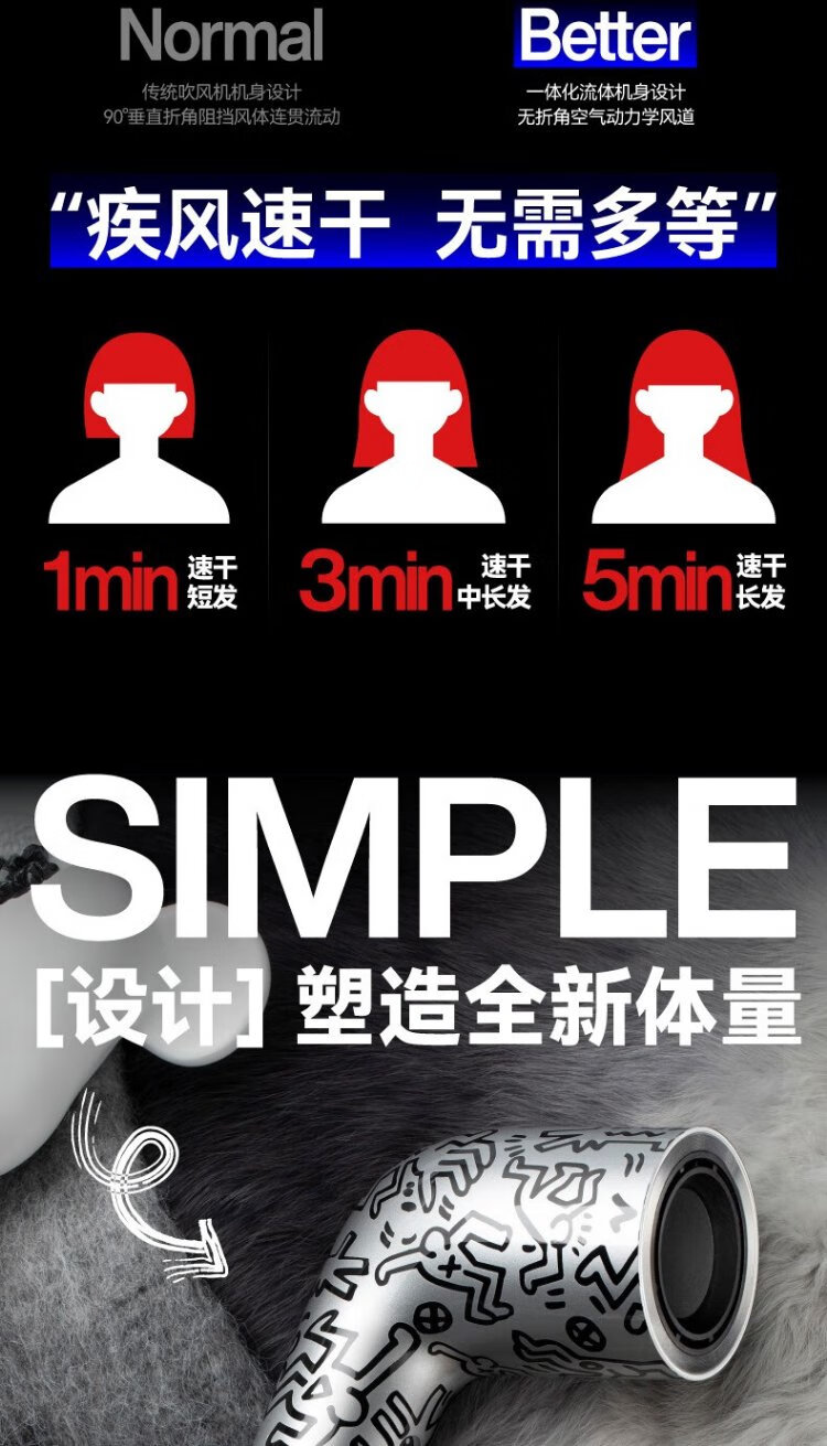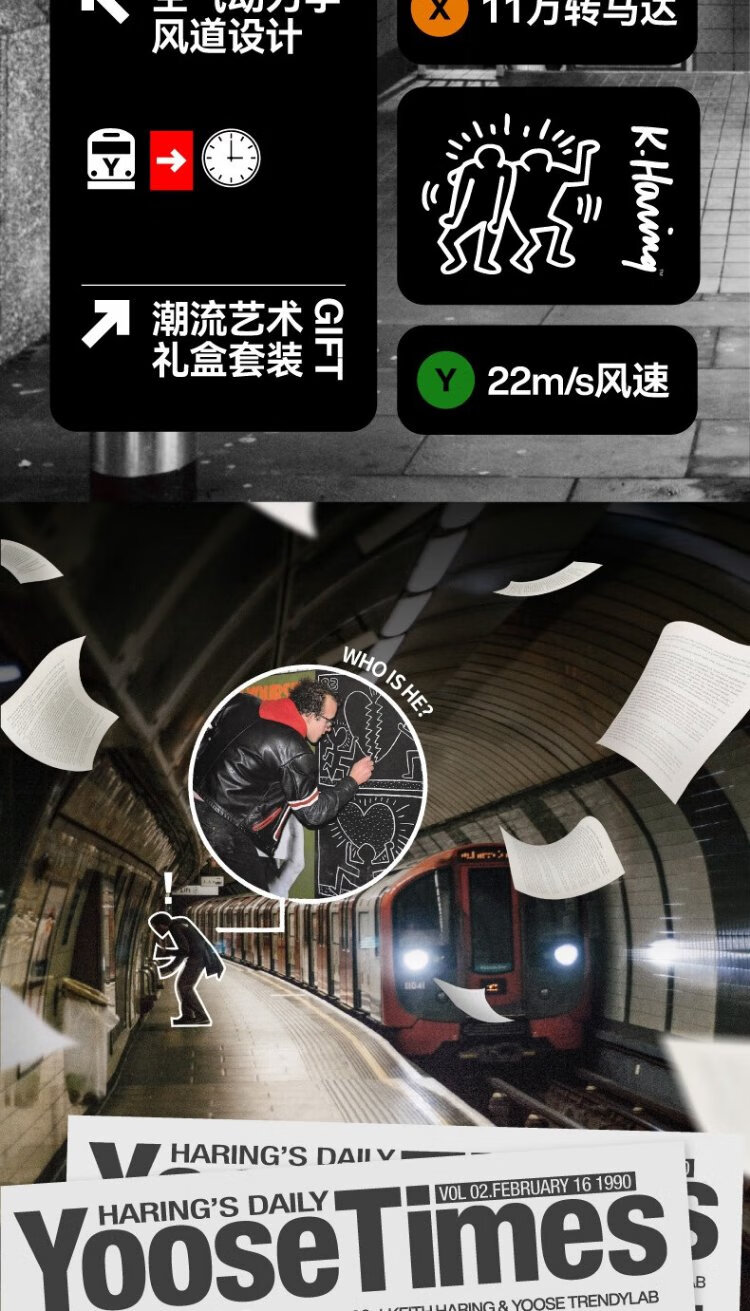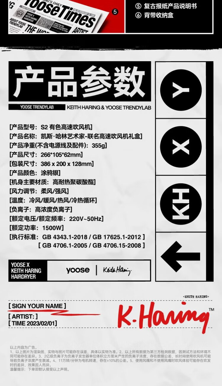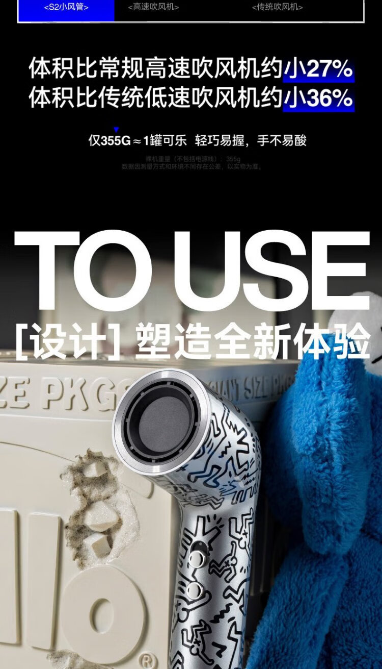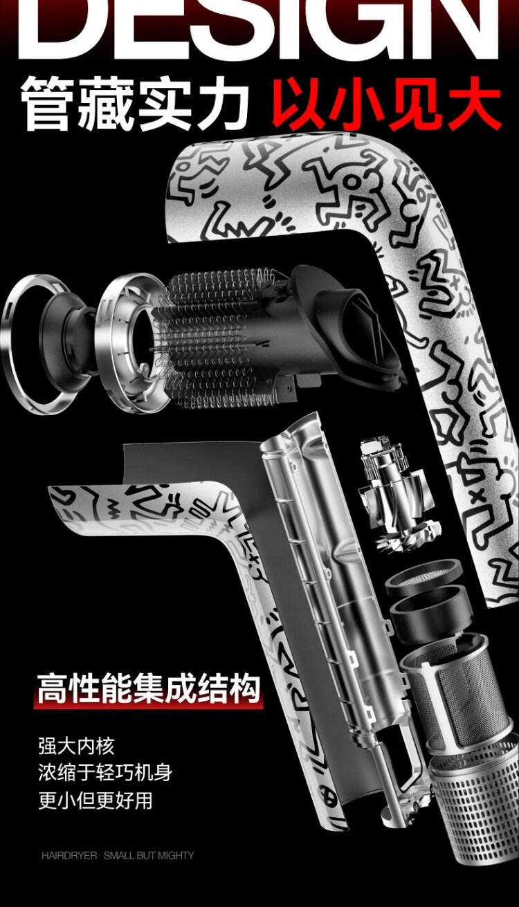 有色yoose哈林S2高速吹风机S2联名款 涂鸦银