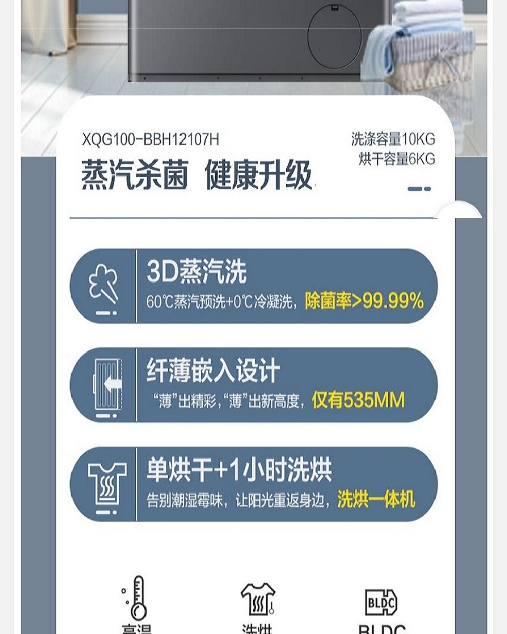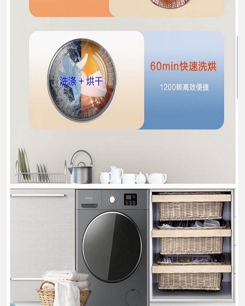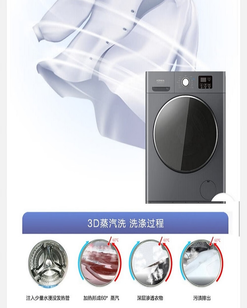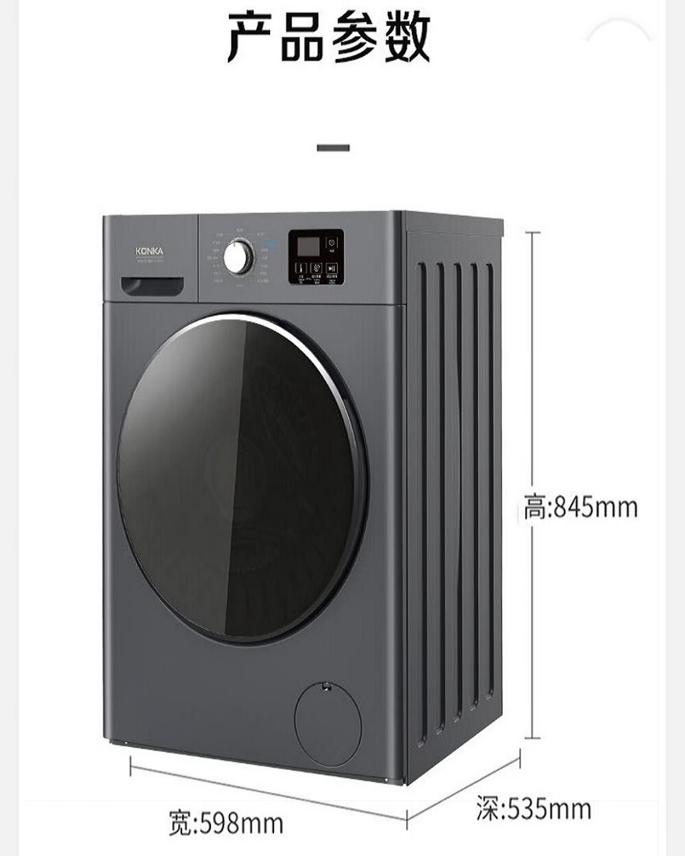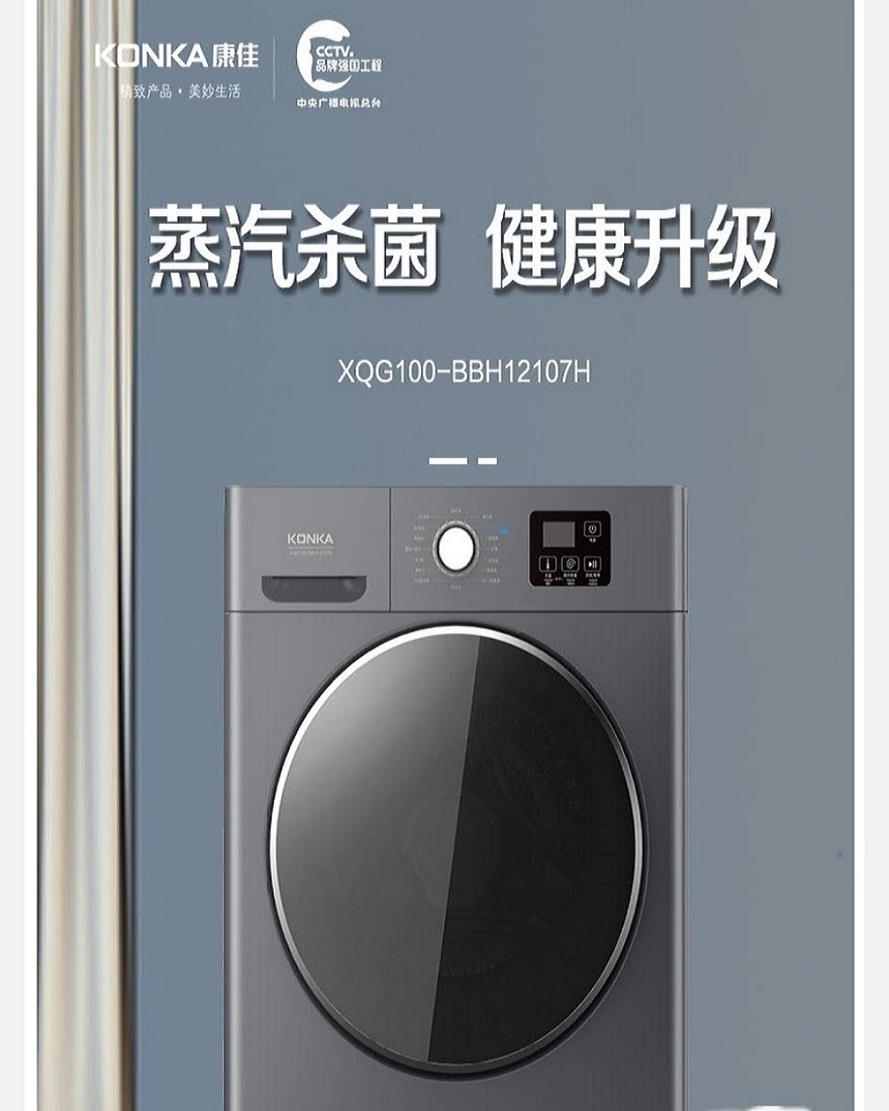 康佳(KONKA)10公斤变频洗烘一体滚筒洗衣机XQG100-BBH12107H(台) 灰色