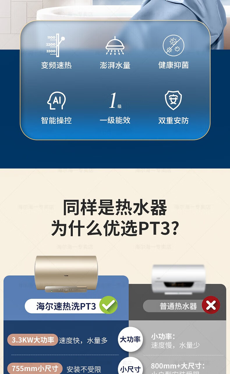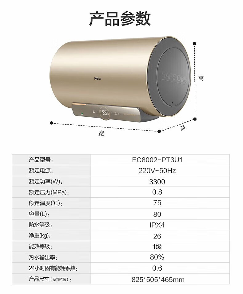 海尔 EC8002-PT3U1 储水式80升电热水器 金色 (单位:台) 金色