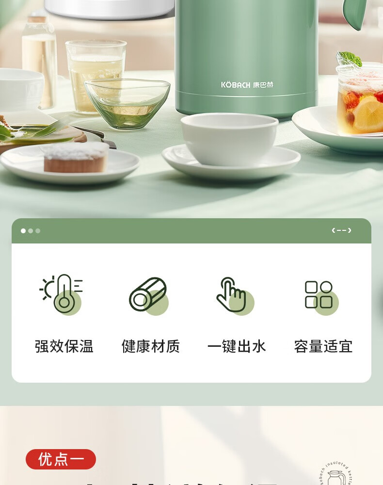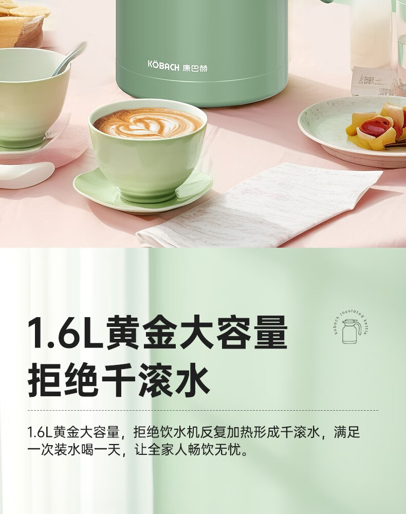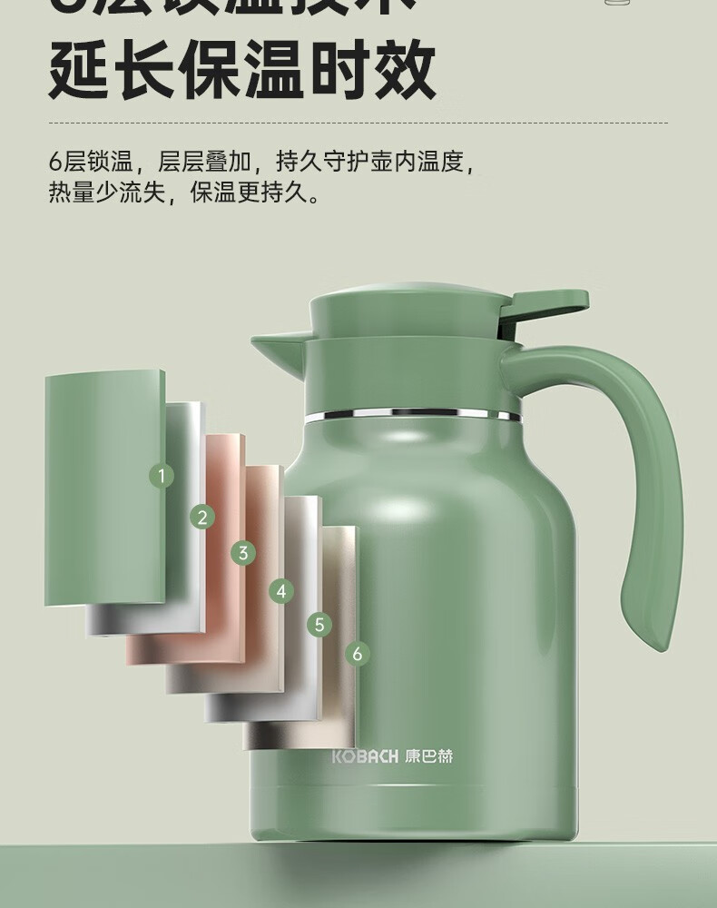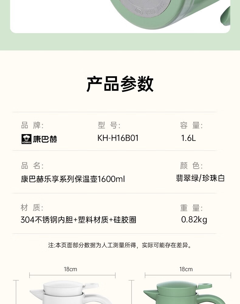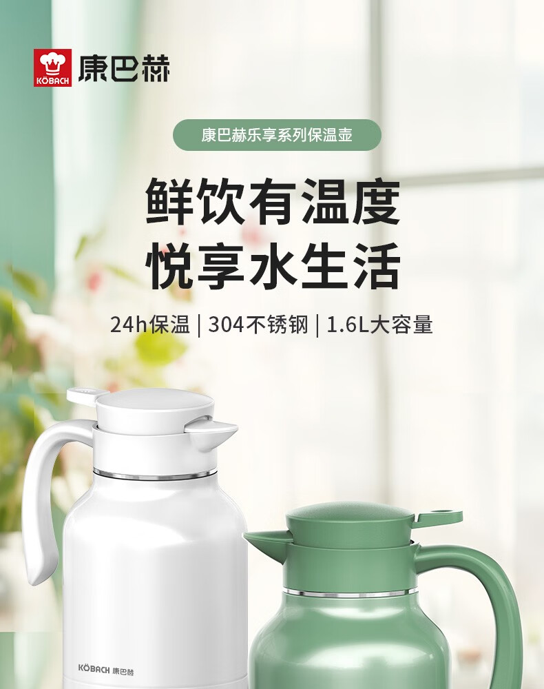 康巴赫-乐享系列保温壶1600ml KH-H16B01(单位:个) 珍珠白