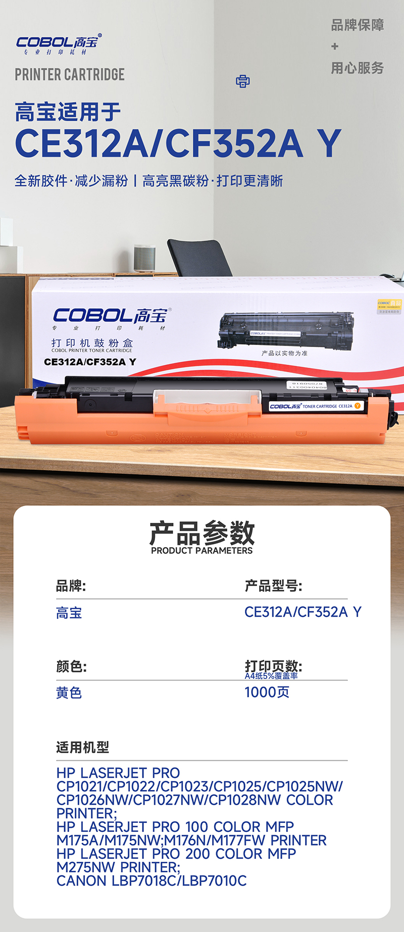 高宝COBOL CE312A/CF352A Y黄色适用惠普CP1021/CP1022/CP102/支 黄色