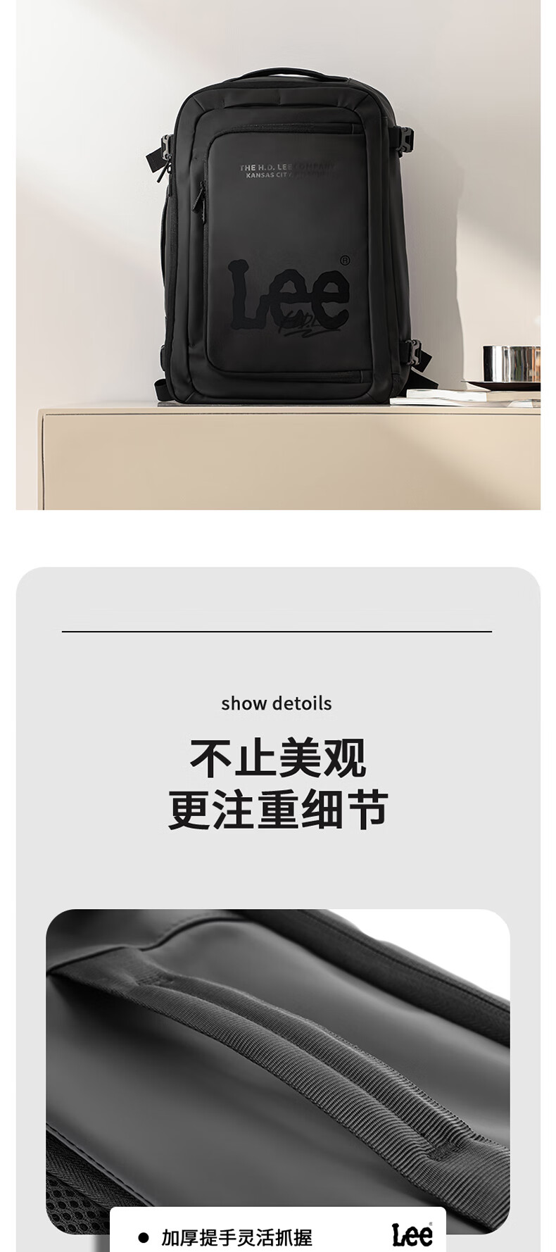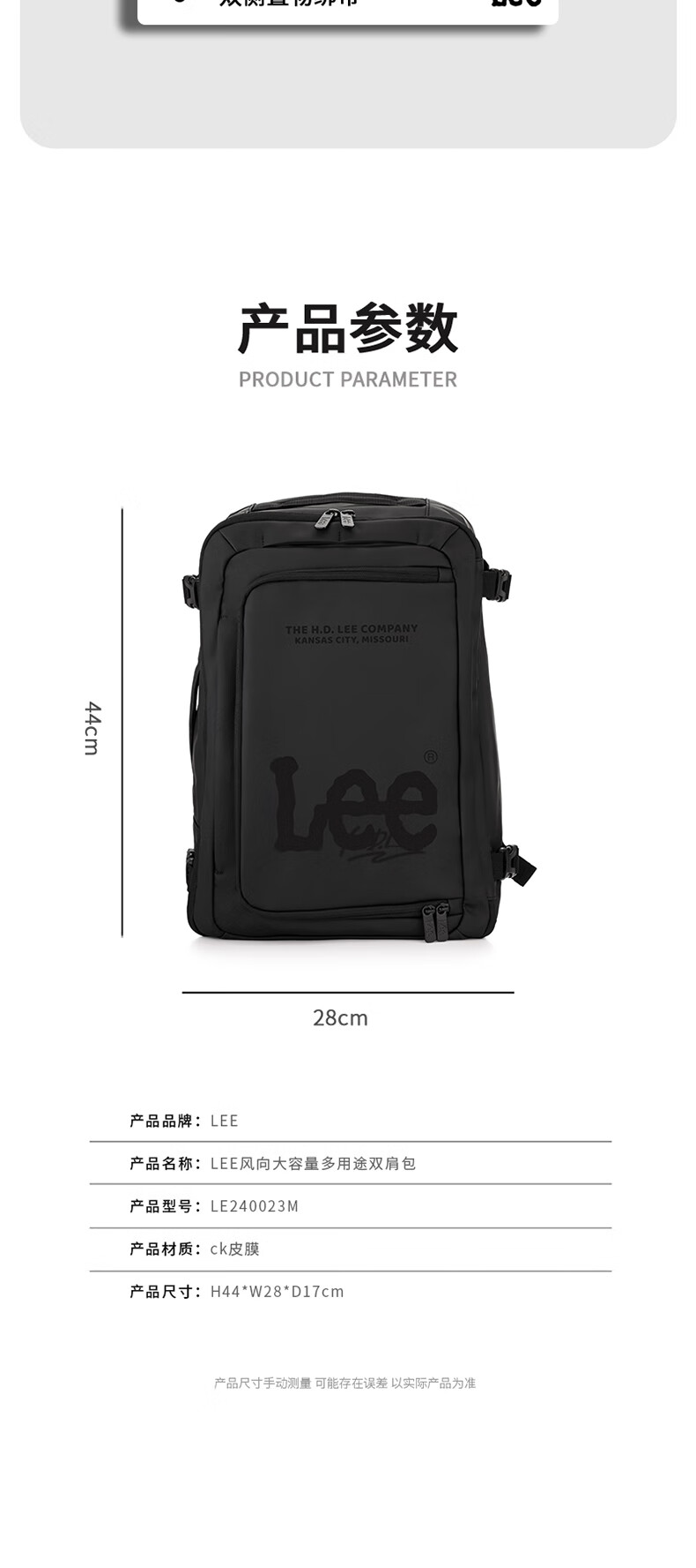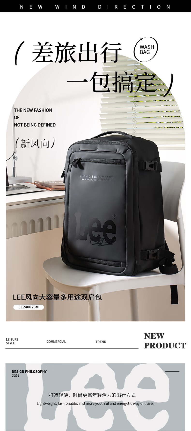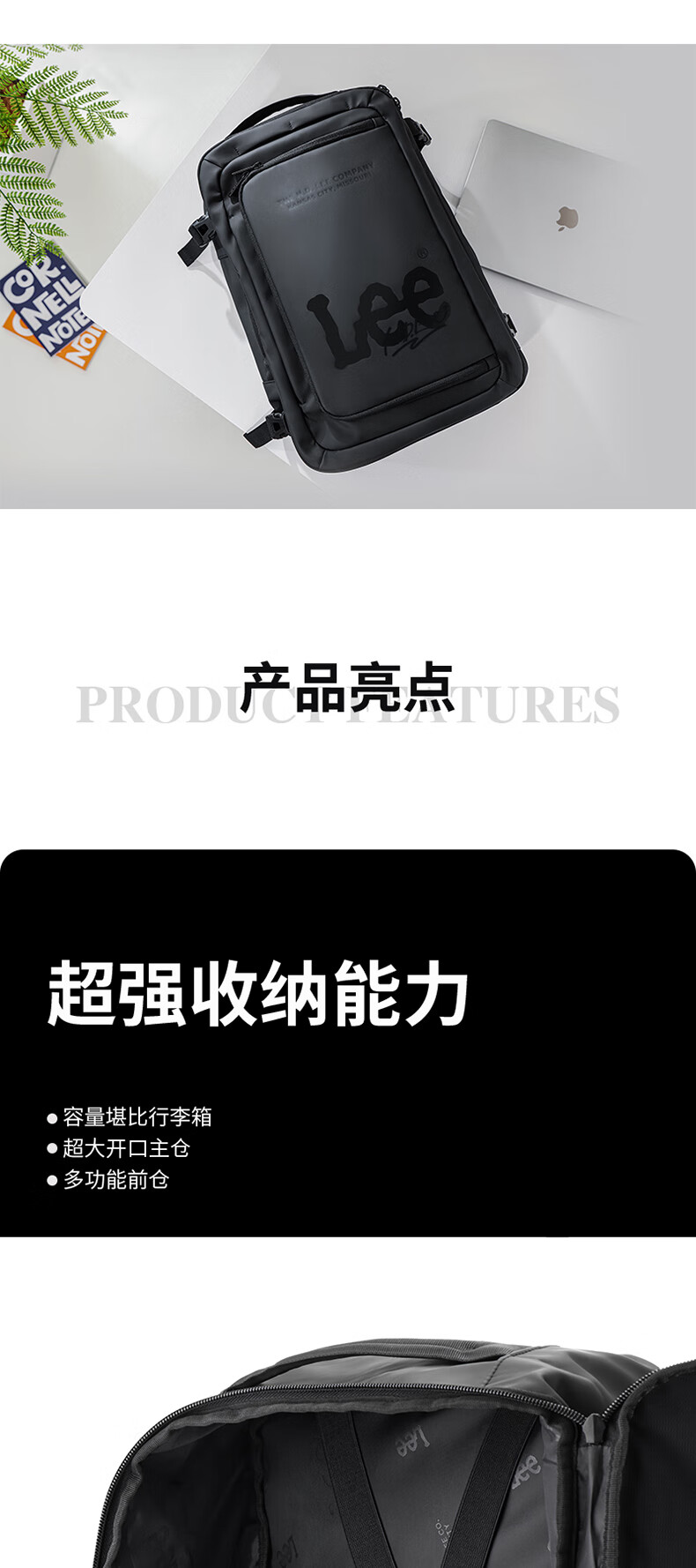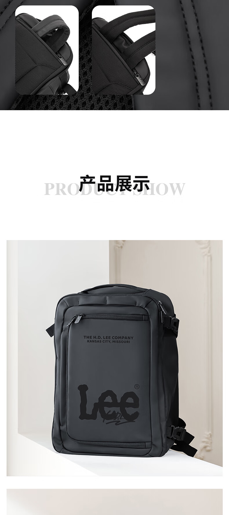 Lee风向大容量多用途双肩包LE240023M(单位:个) 黑色