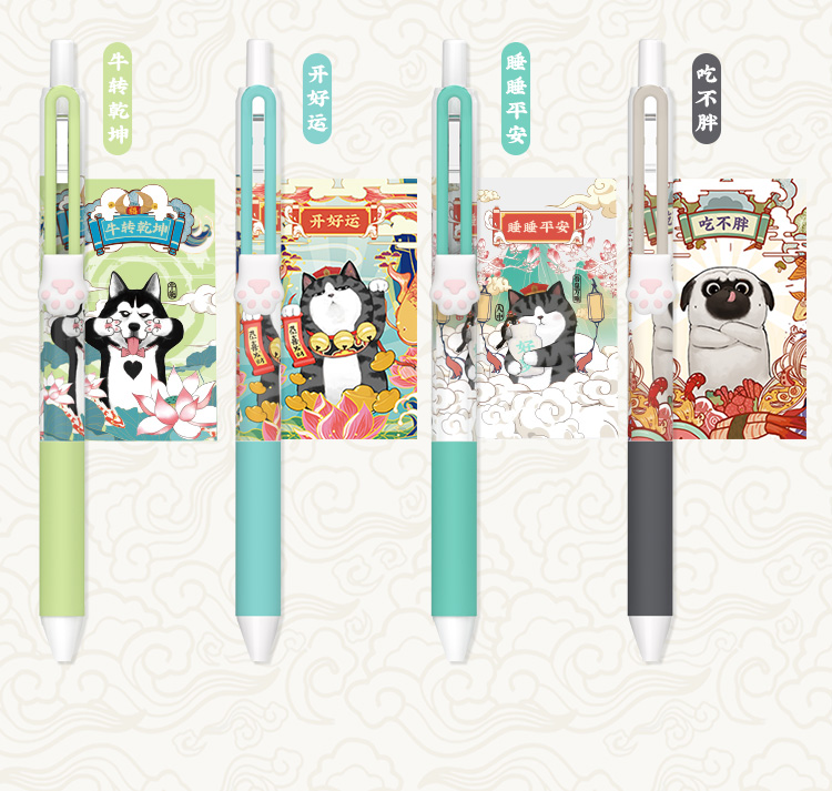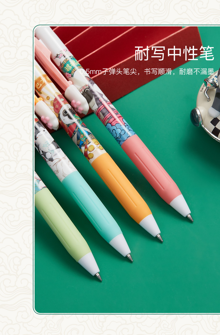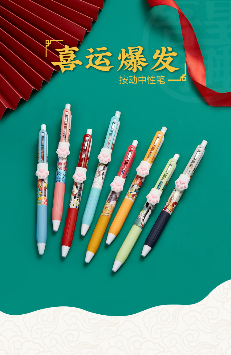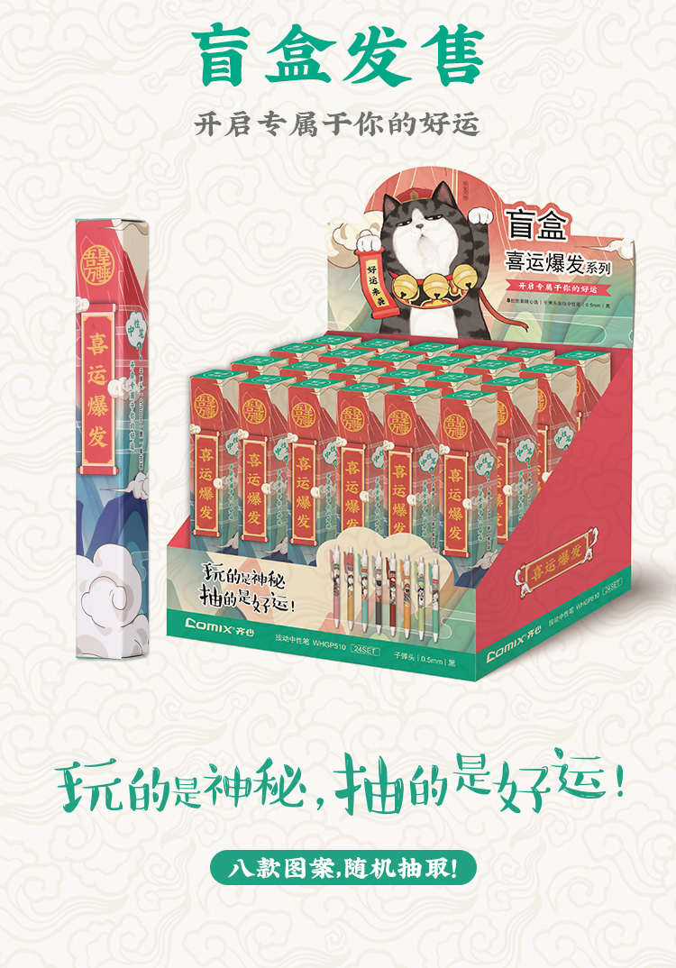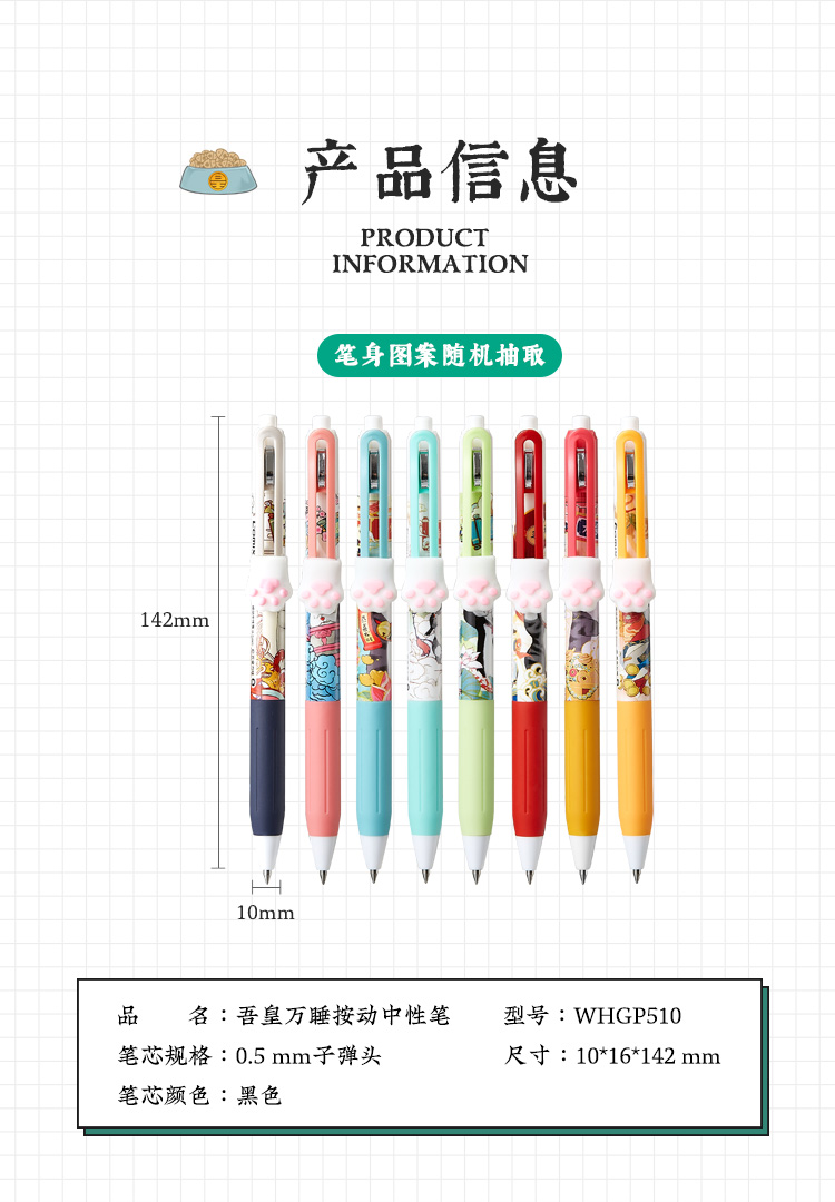 齐心(COMIX) 吾皇万睡按动中性笔 幸运盒 R929芯0.5mm 3支 黑WHGP510 混色