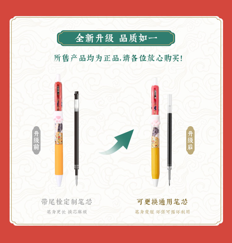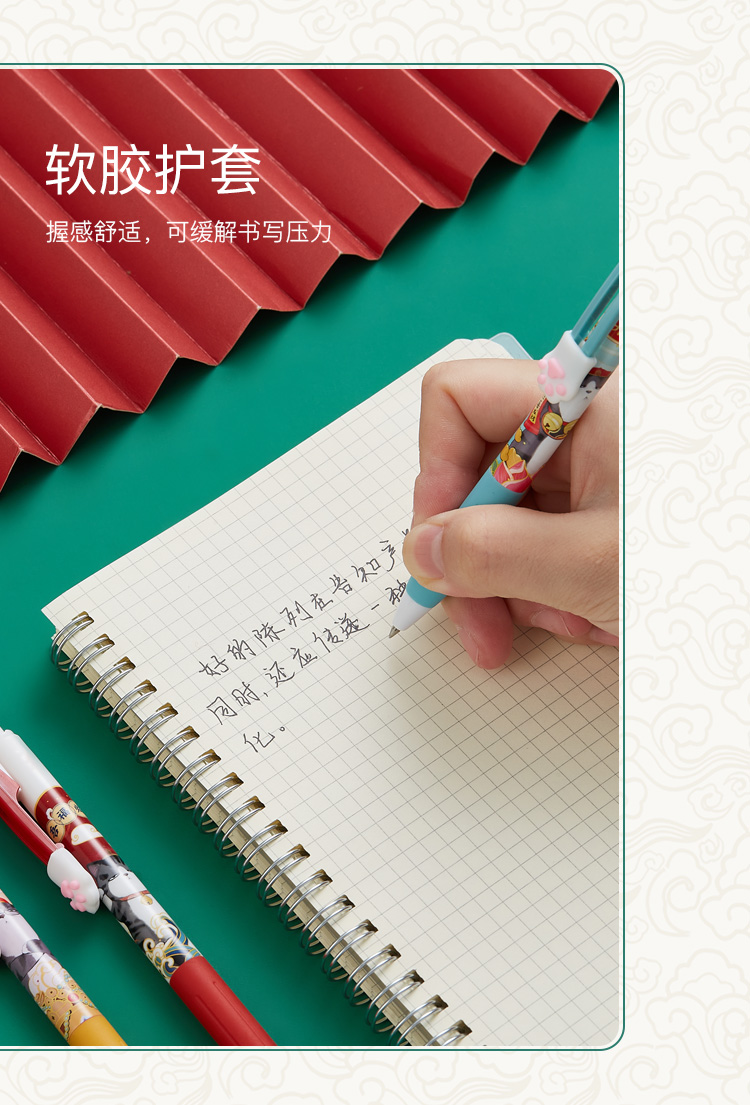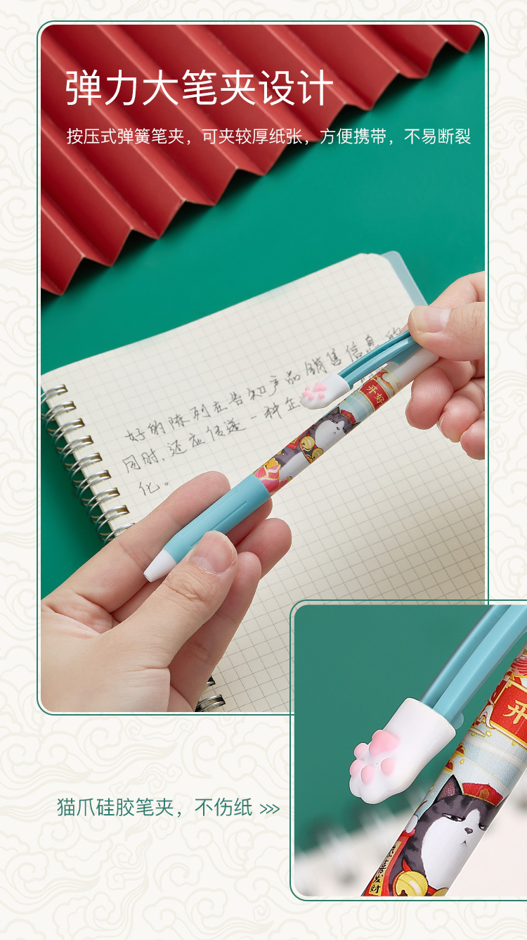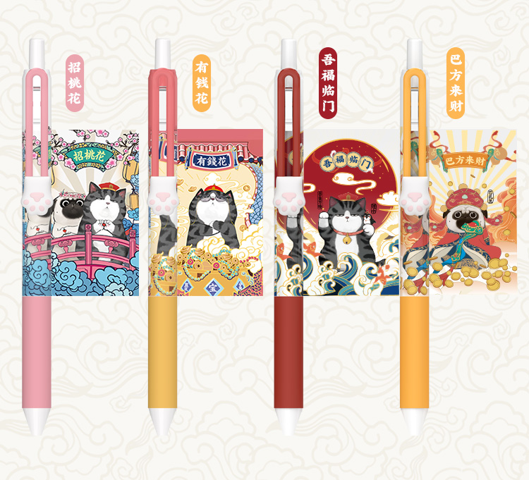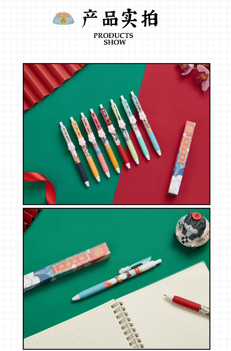 齐心(COMIX) 吾皇万睡按动中性笔 幸运盒 R929芯0.5mm 3支 黑WHGP510 混色