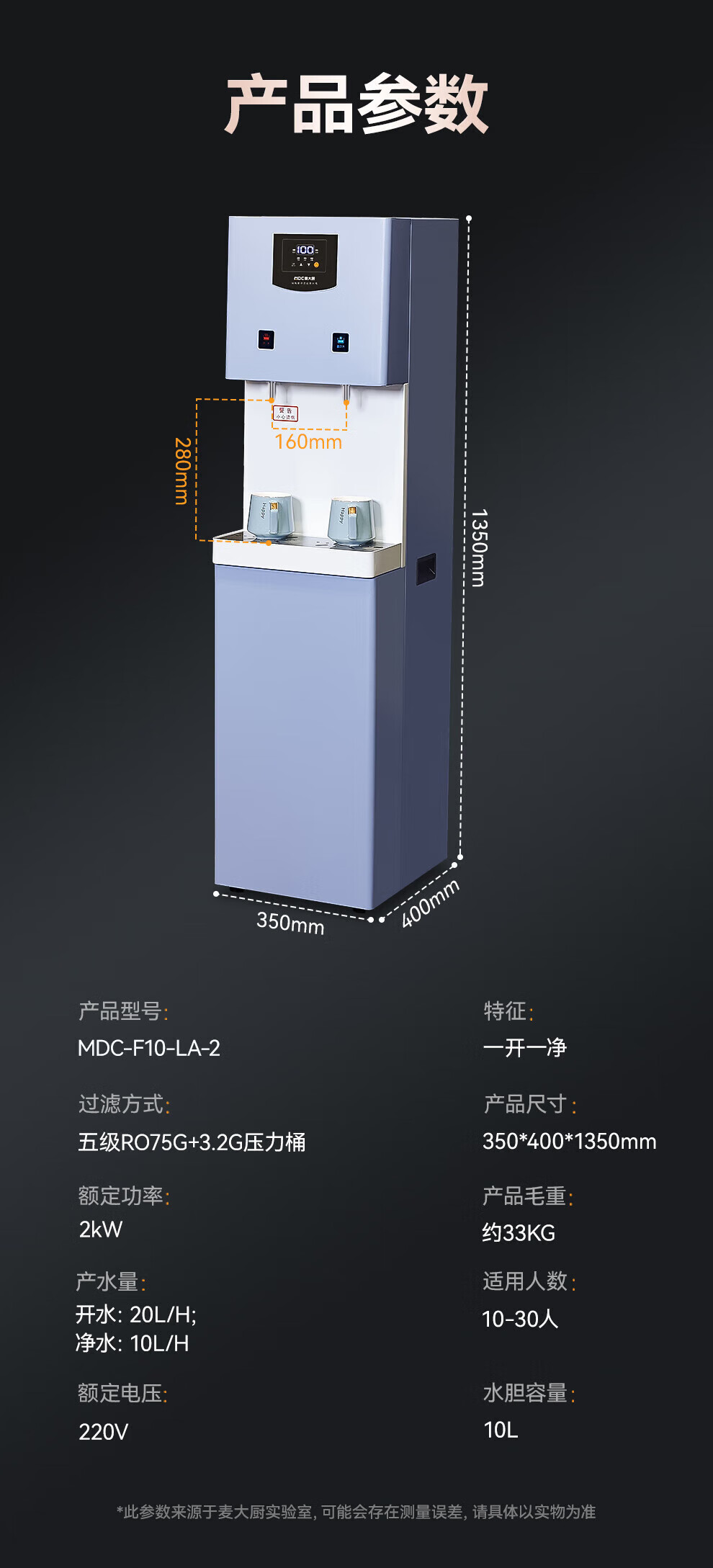 麦大厨 F10系列 220V 2KW 轻商务饮水机 (一开一净 五级RO) 天蓝色