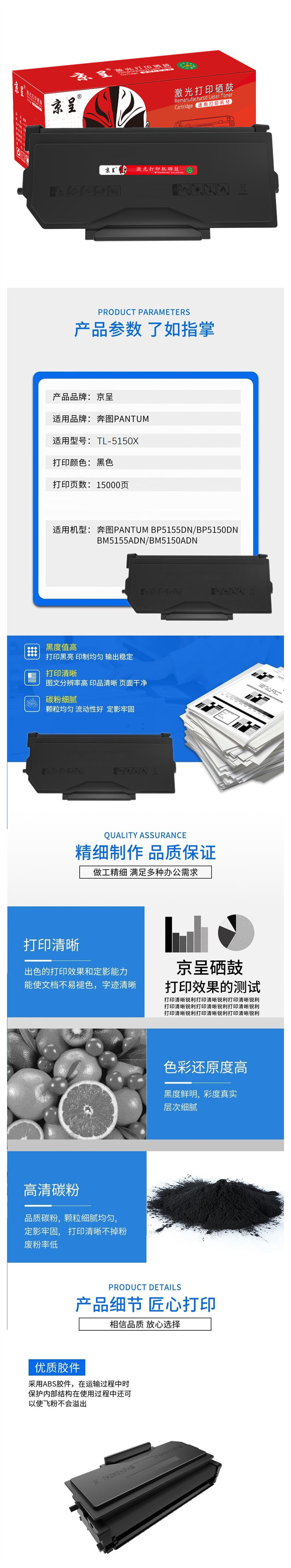 京呈 TL-5150X 粉盒 15000页 适用奔图BP5155DN BM5150ADN BM5155ADN 计价单位:支 黑色