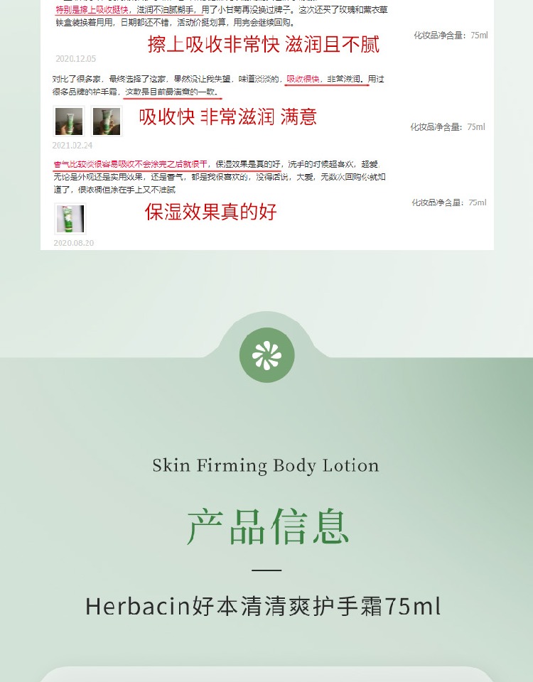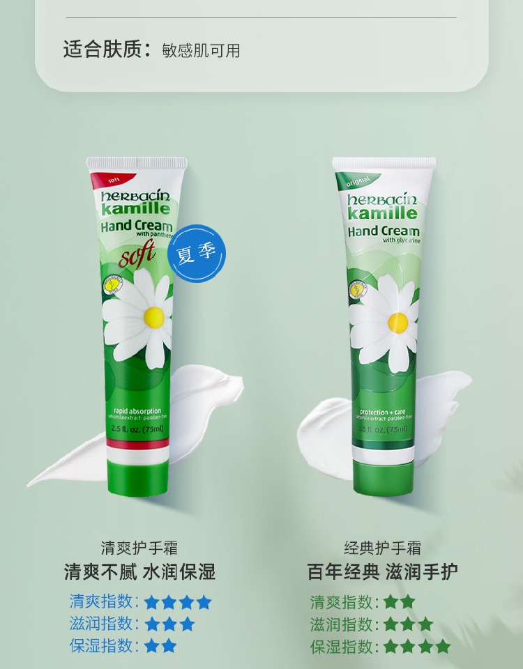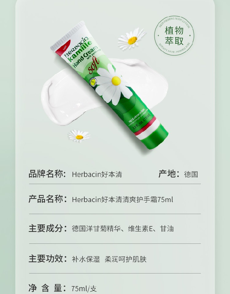 小甘菊(Herbacin)柔皙护手霜75g 单位:支 绿色