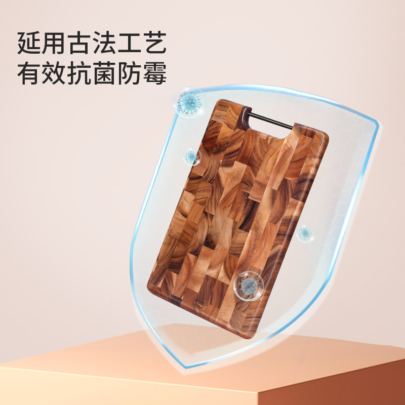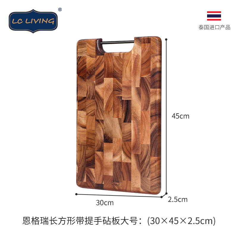 LC LIVING MP174L恩格瑞长方形菜板带提手大号(30年树龄/金属提手)45x30x2.5cm(单位:个) 原木色