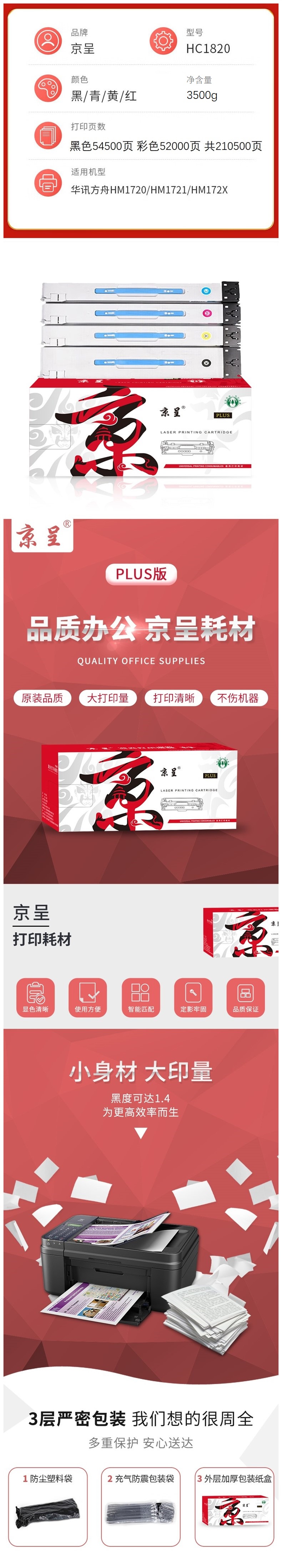 京呈 PLUS HC1820 粉盒 四色套装 适用华讯方舟HM1720/HM1721/HM172X 计价单位:套 混色