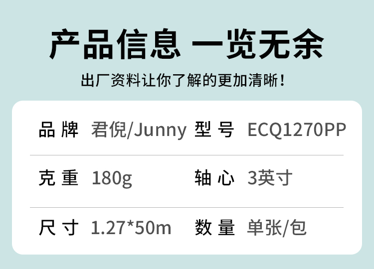 君倪(Junny)户外弱溶剂ECQ1270PP合成纸180g 1.27*50米/卷高清喷绘卷筒纸(单位:卷) 白色