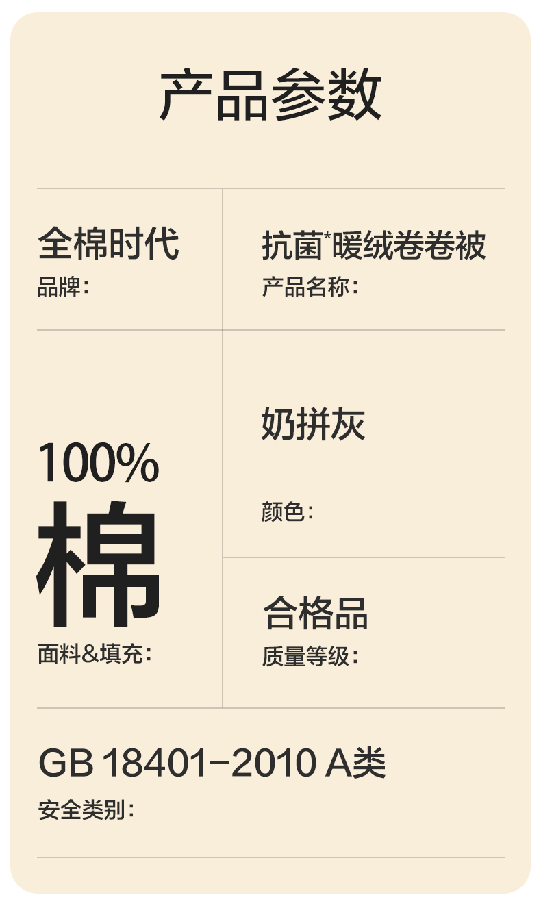 全棉时代抗菌暖绒卷卷加厚被 220cm×240cm 暖绒卷卷冬厚被芯PBQ244001BA00220(单位:件) 白色