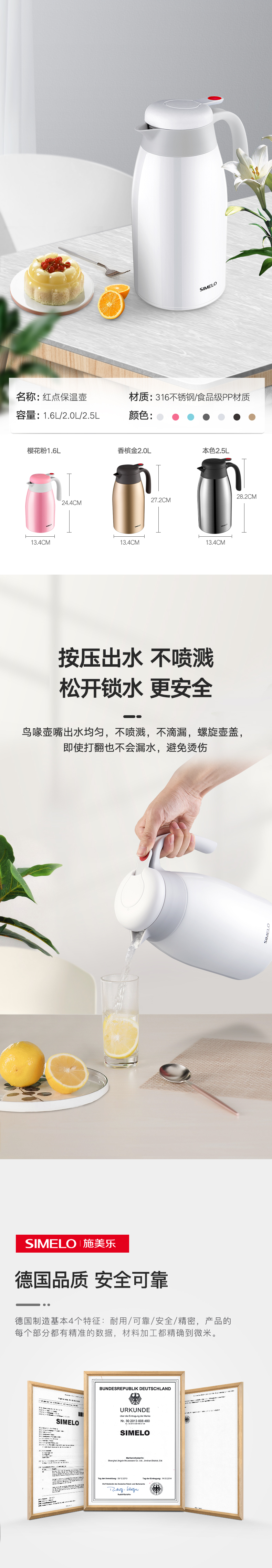 SIMELO印象京都系列红点保温壶1600ML(单位:个) 本色