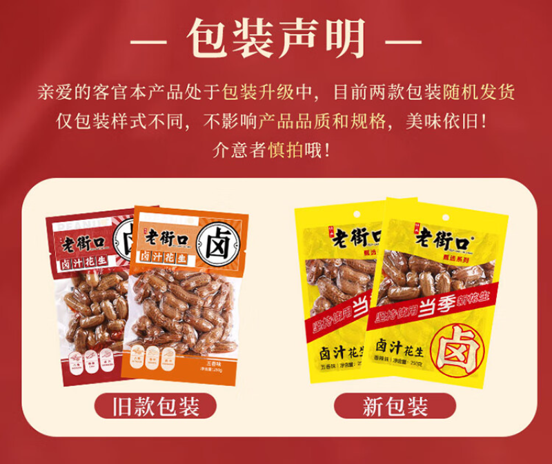 老街口 香辣味 250g*1袋 卤汁花生 混色(单位:袋)