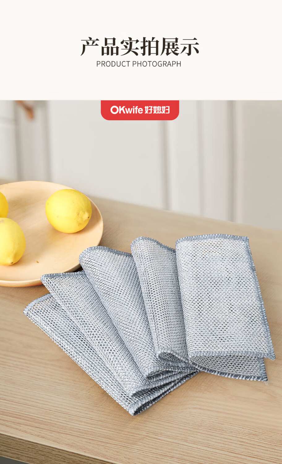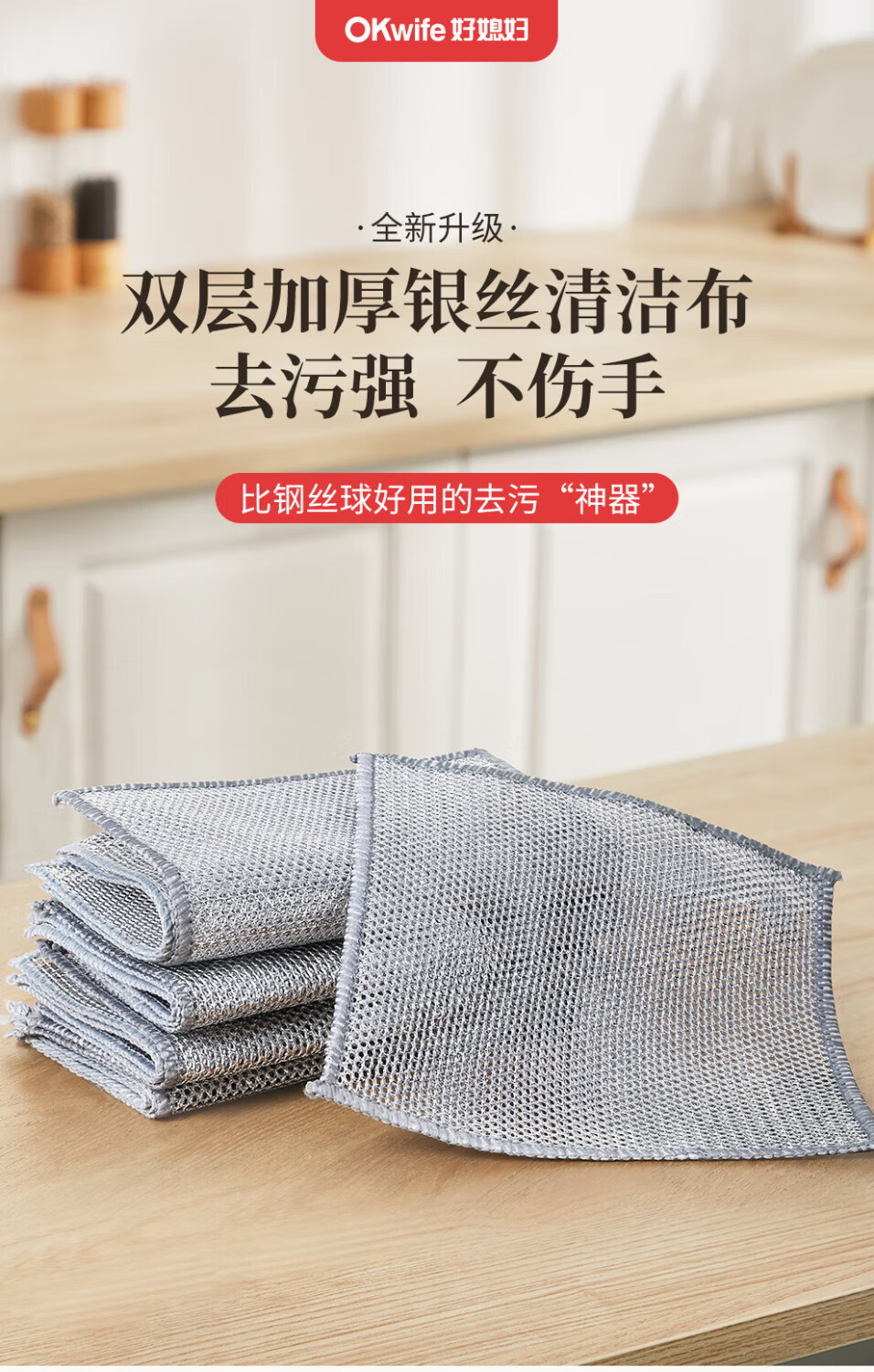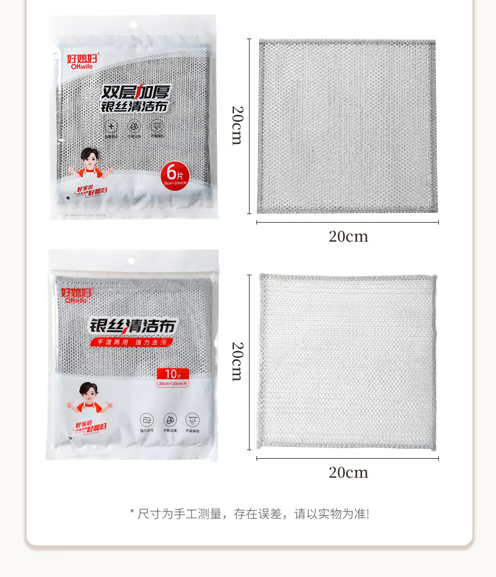 好媳妇(OKwife)银丝清洁布20*20cm 去油渍去污洗碗百洁布AGW- 6327 10片(单位:组) 银色