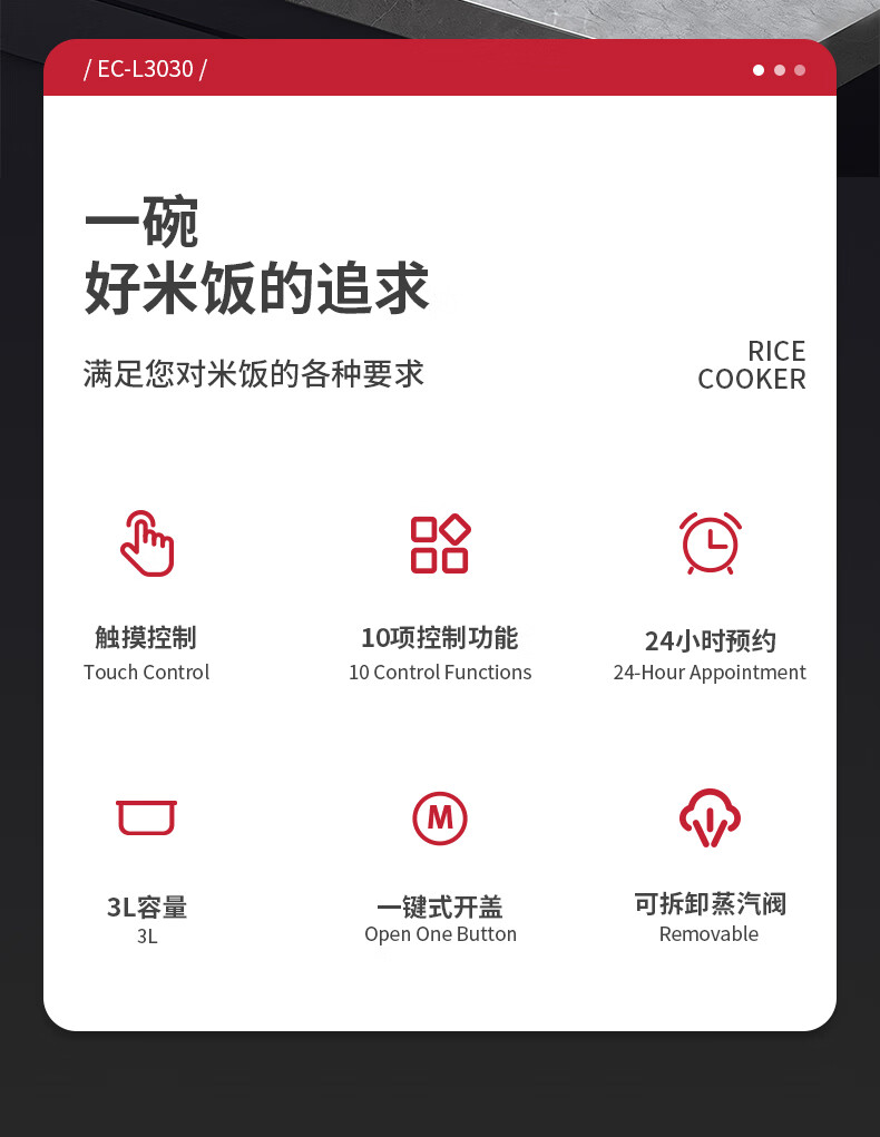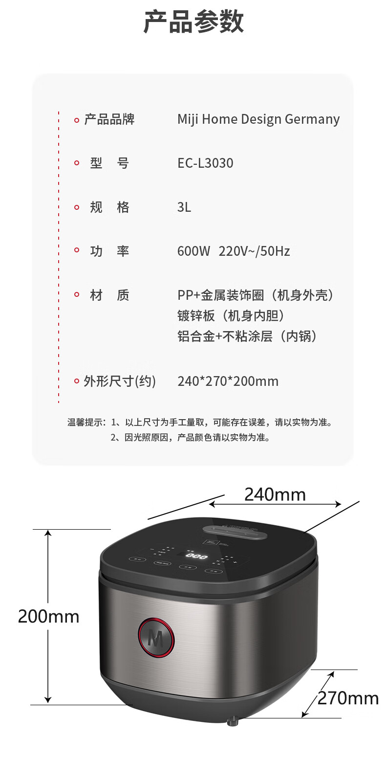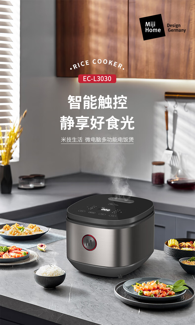 Miji Home Design Germany 微电脑电饭煲 EC-L3030 3L 银灰色(单位:台)