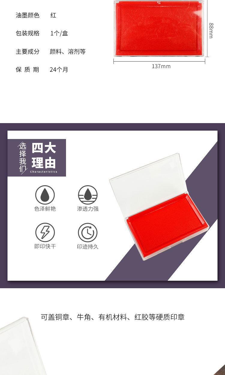天章 (TANGO) 盖章印台 137x88mm 快干红色印台 红色(单位:盒)