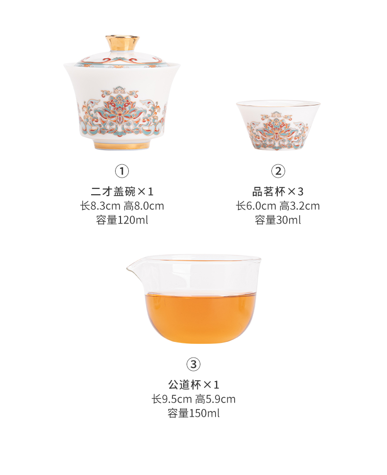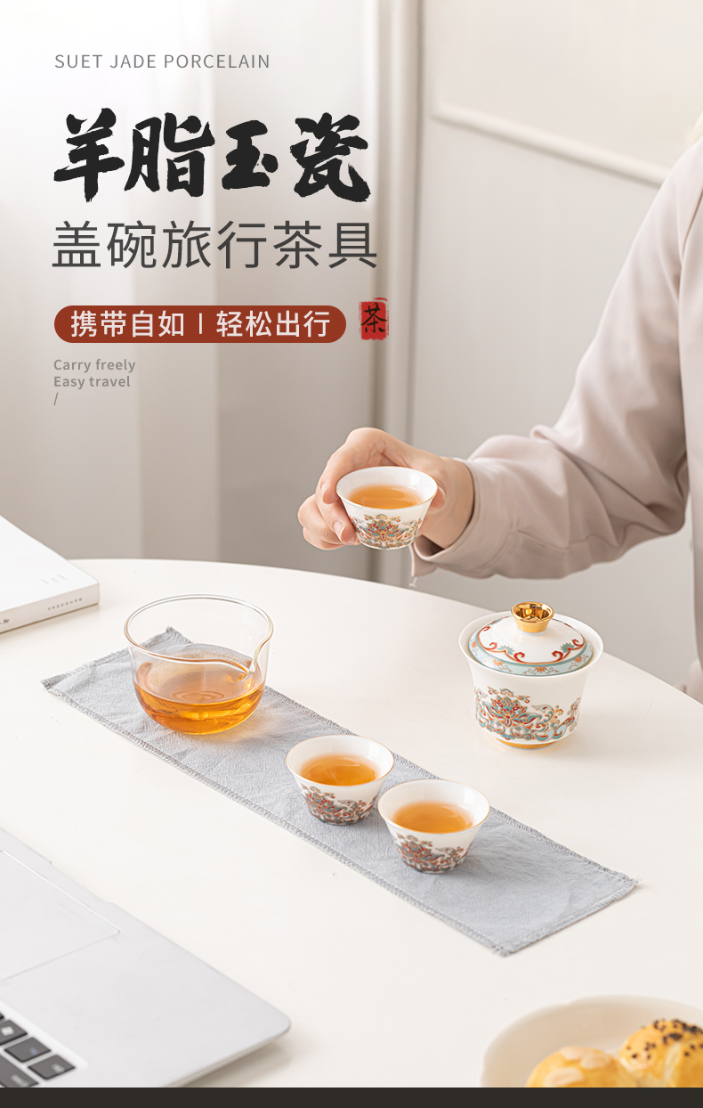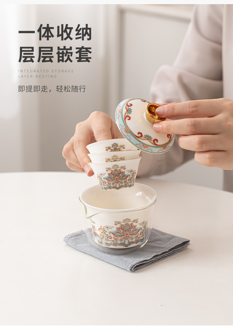 苏氏陶瓷(SUSHI CERAMICS) J1109 5头 敦煌宝相花旅行茶具 混色(单位:套)