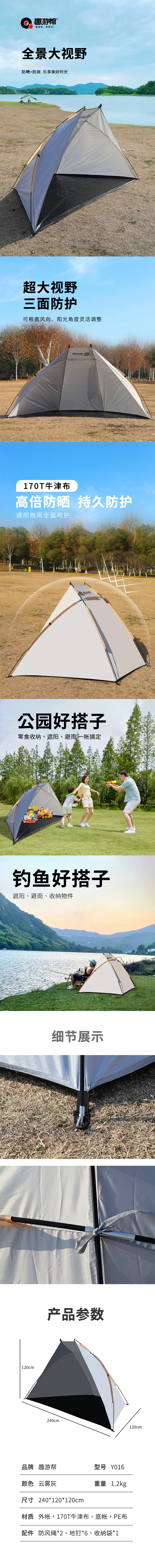 趣游帮 Y016 240*120*120cm 手搭半帐天幕 灰色(单位:顶)