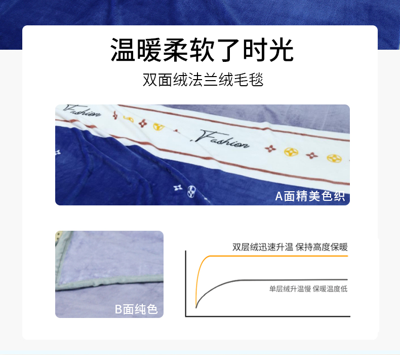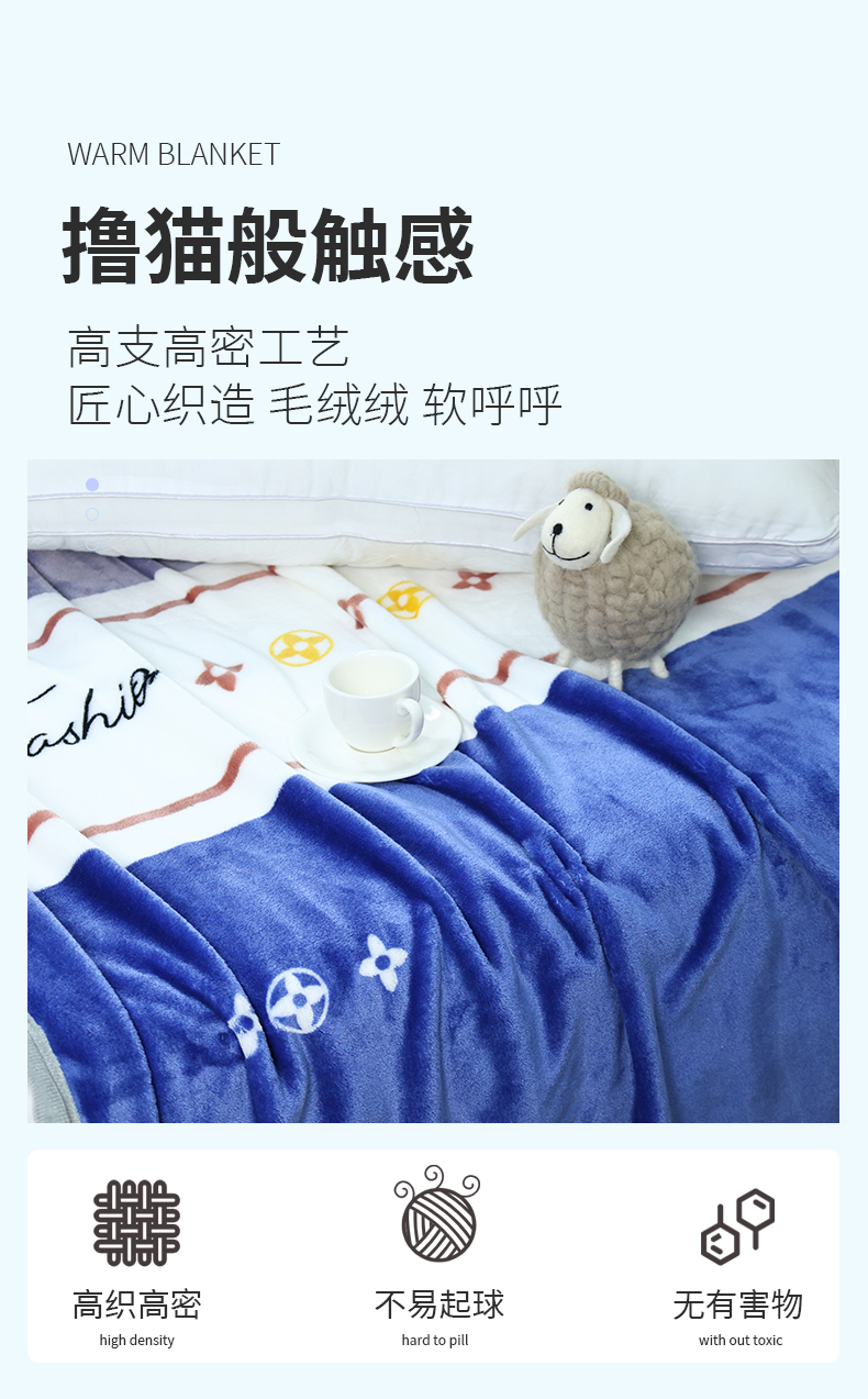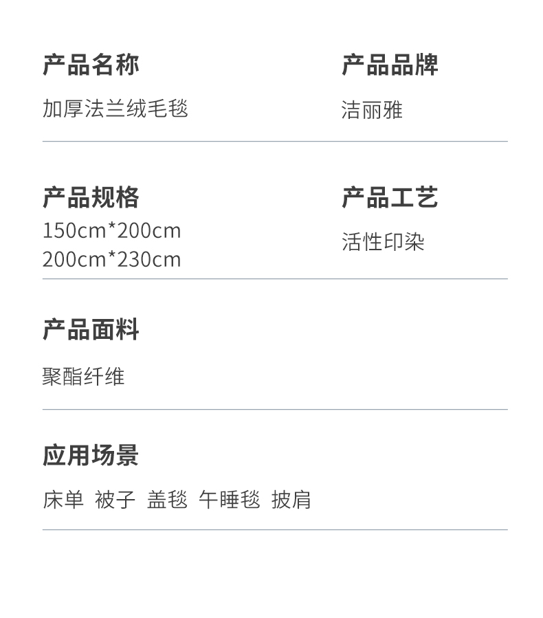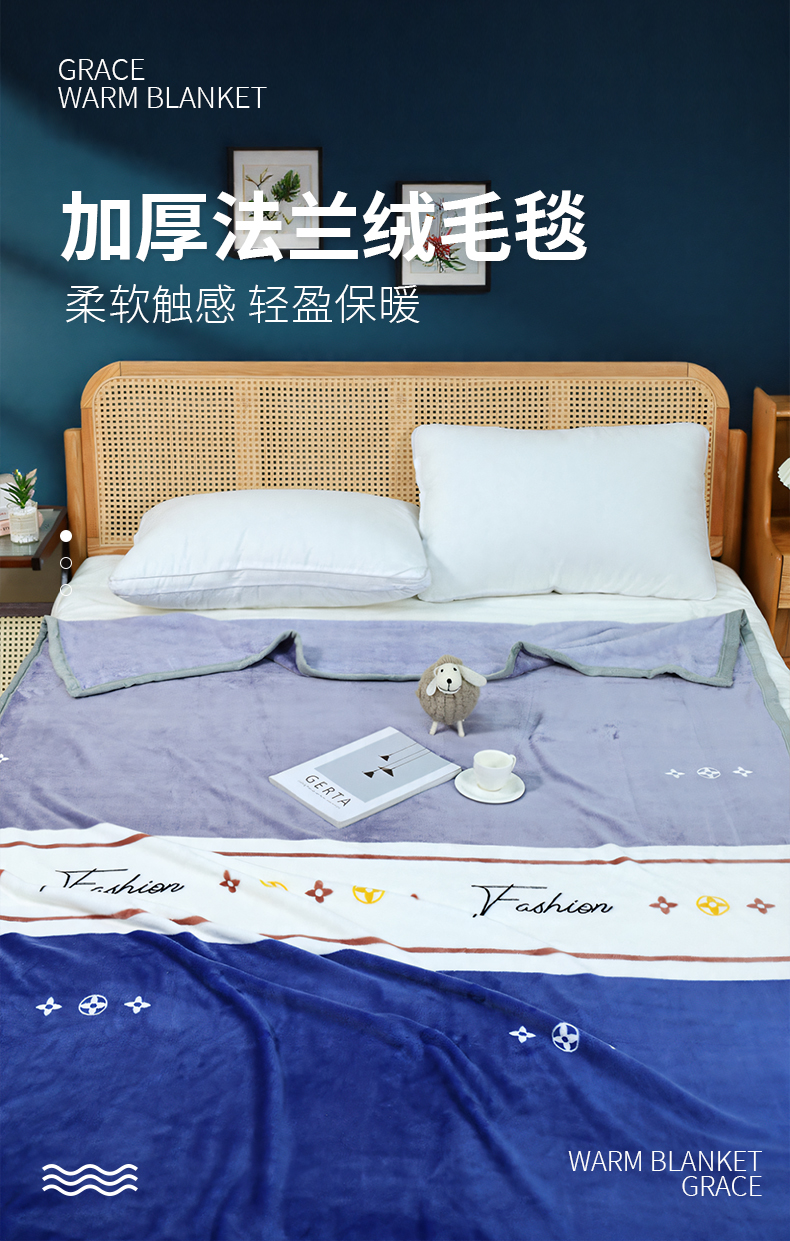 洁丽雅(Grace) CP887-1 150*200cm 法莱绒毯 宝石蓝(单位:床)