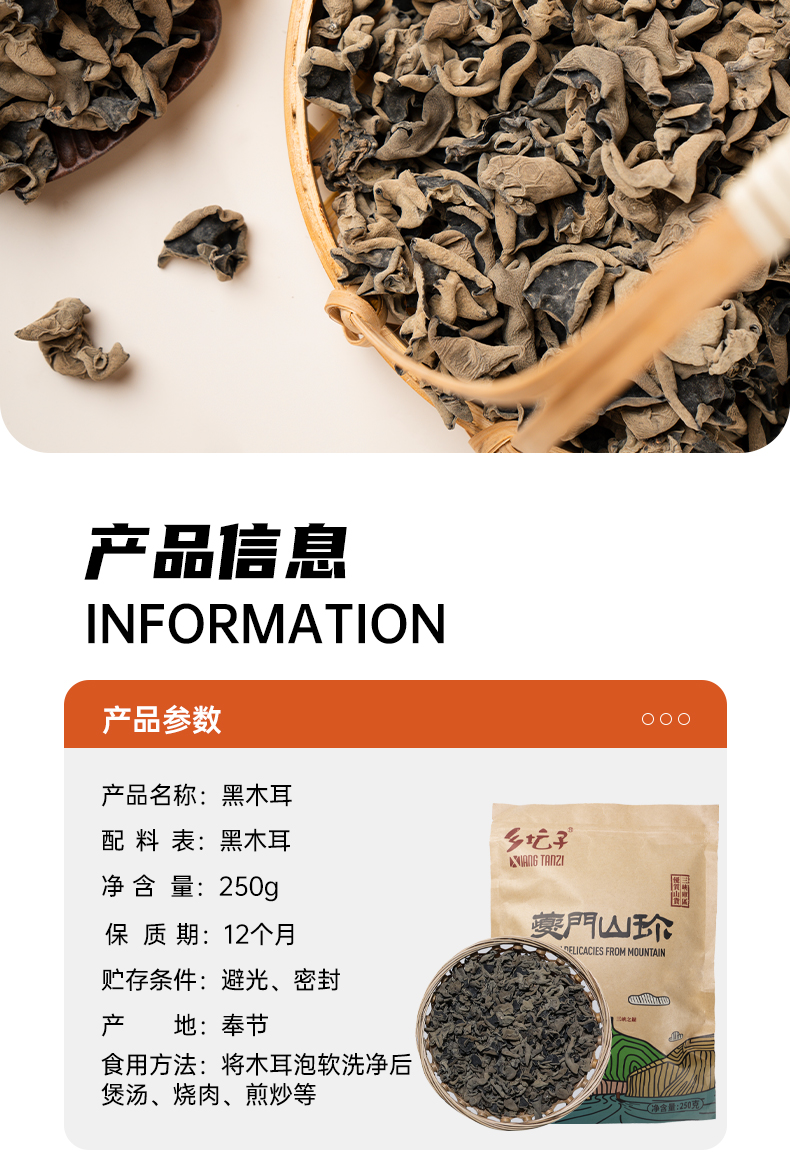 乡坛子 干黑木耳 250g*1 滑嫩可口特产干货 混色(单位:袋)