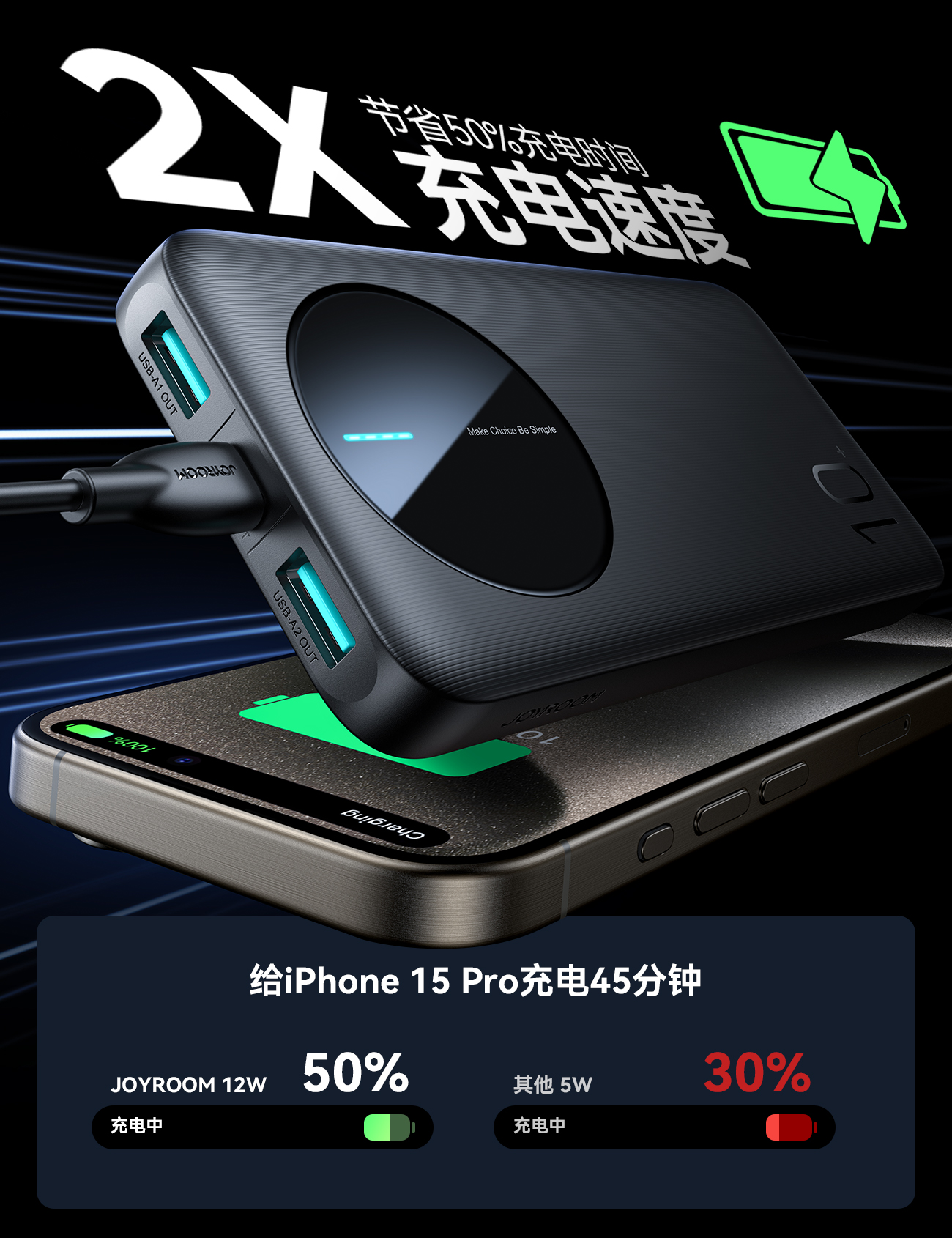 机乐堂(JOYROOM) JR-PBF12 165*100*25mm 超薄系列移动电源 黑色(单位:个)