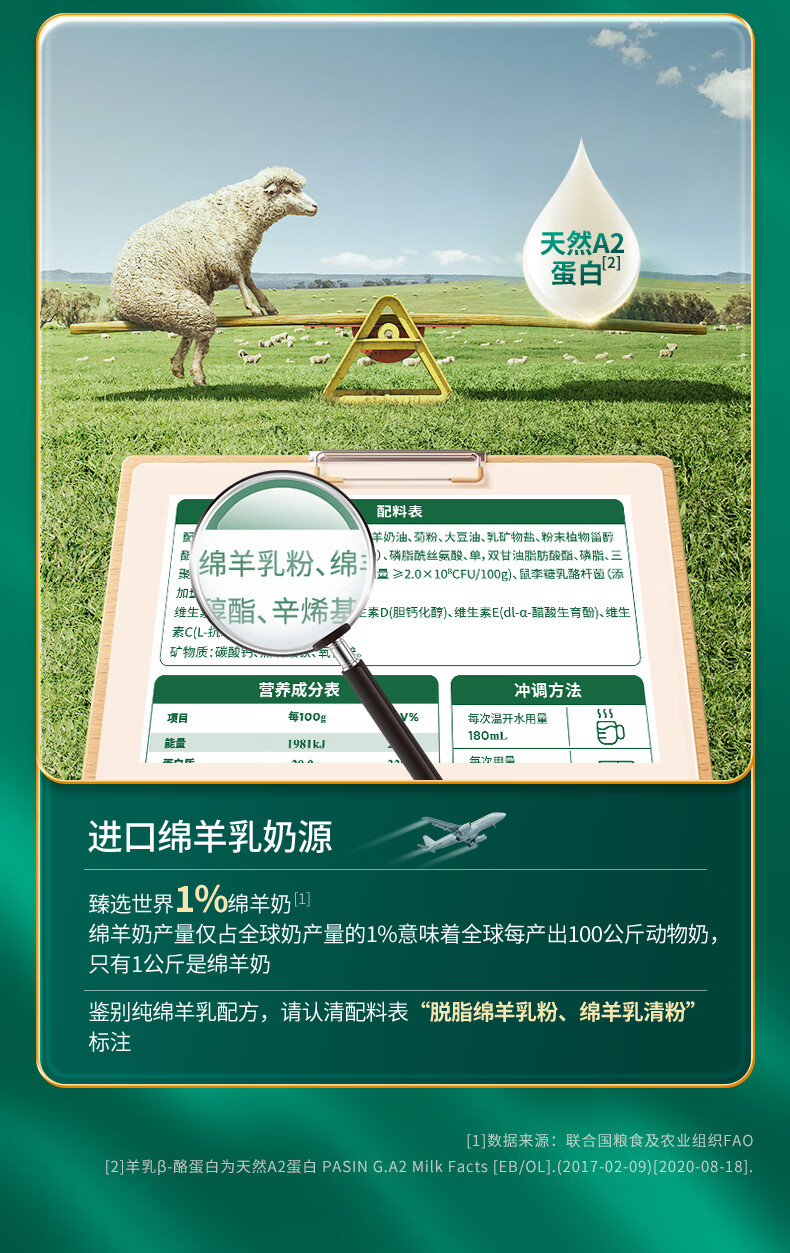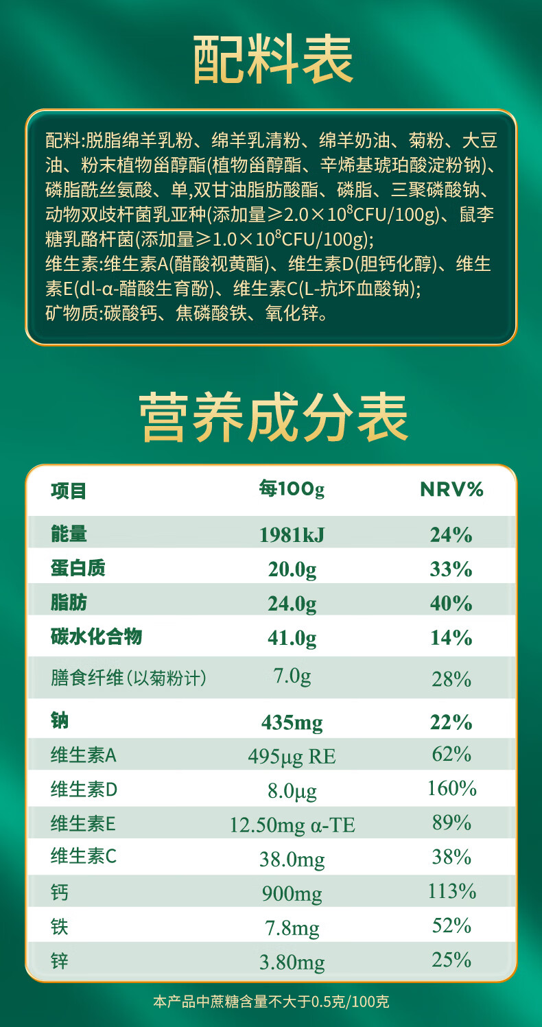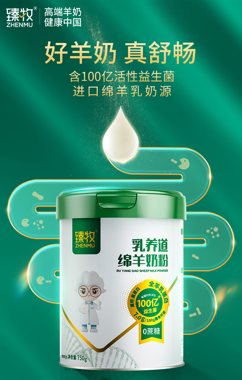 臻牧/zhenmu 乳养道绵羊奶粉 礼盒装 750g*2罐 红色(单位:盒)