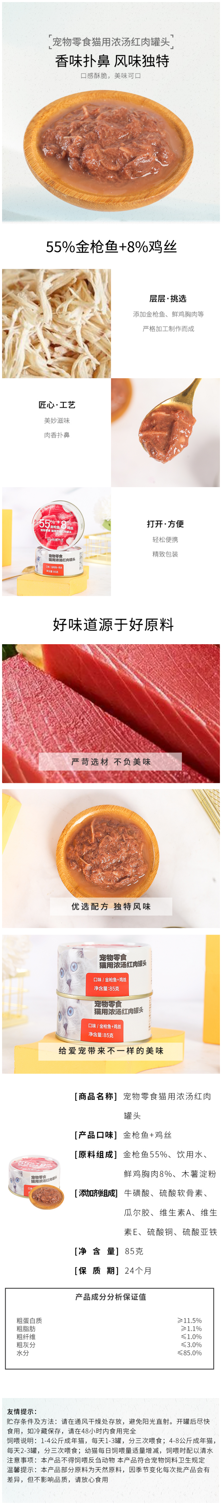 网易严选 猫零食 85g*1 猫用浓汤红肉罐头 混色(单位:罐)