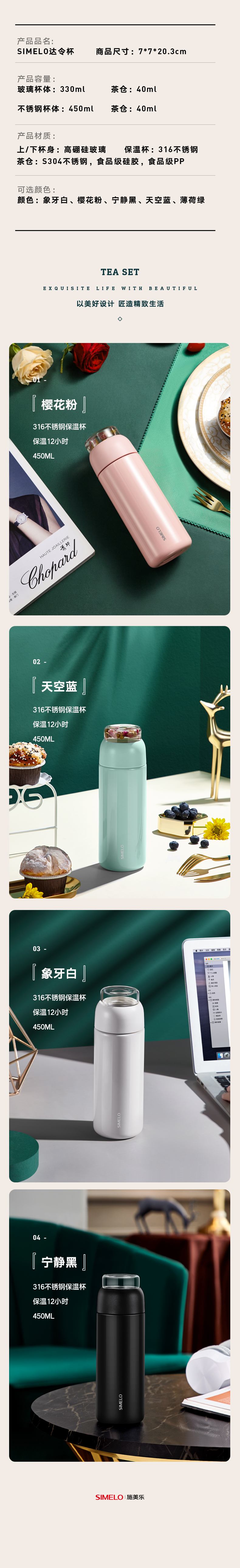 SIMELO印象京都达令茶水分离保温杯450ML(单位:个) 抹茶绿