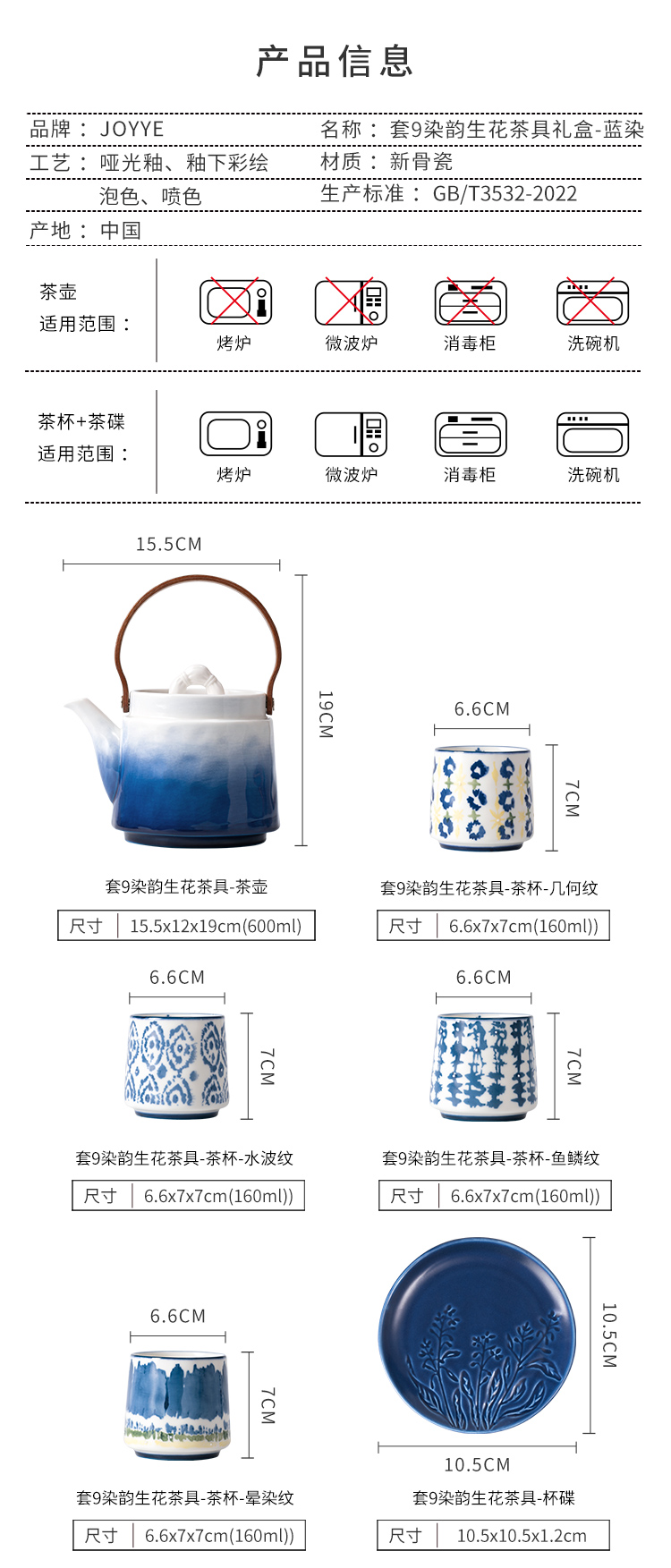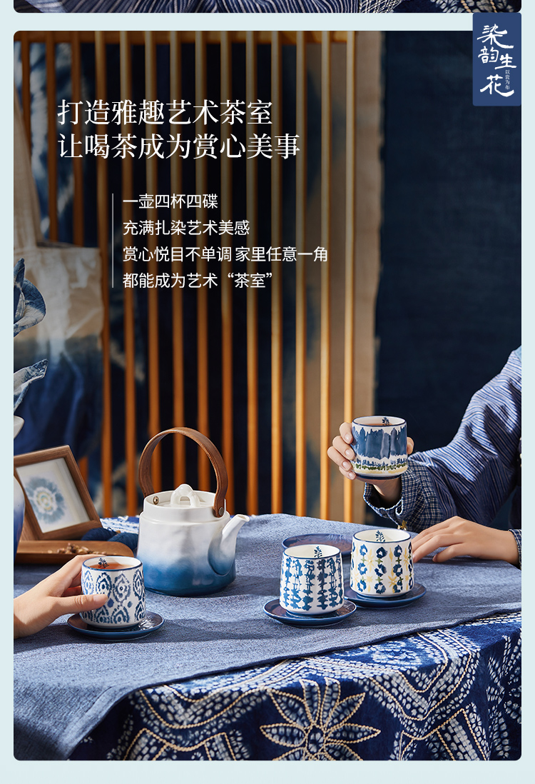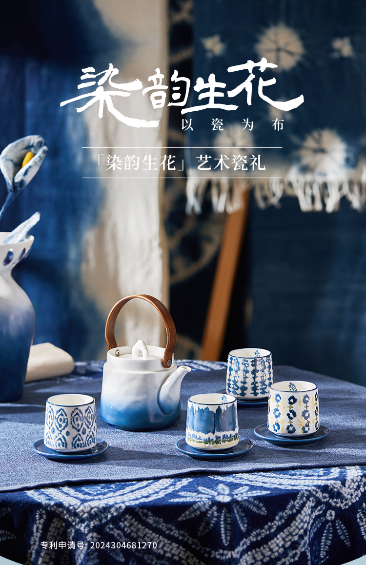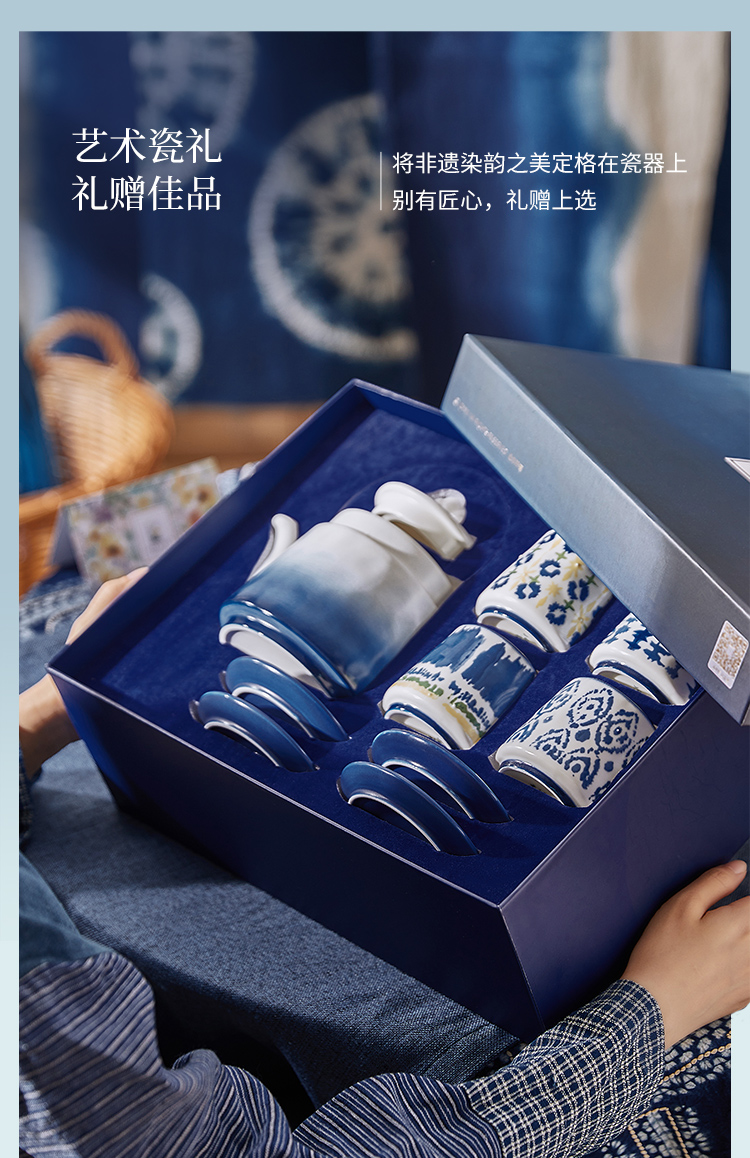 JOYYE 套9染韵生花茶具礼盒 9件套 茶具套装 蓝染(单位:套)