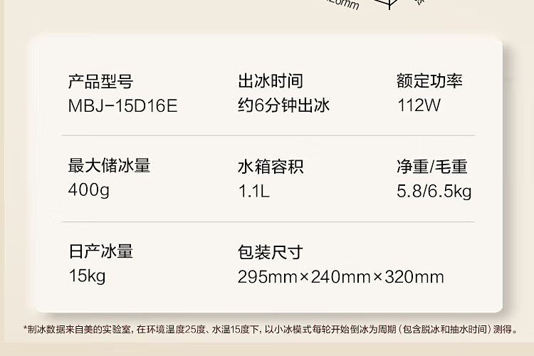 美的(Midea) MBJ-15D16E 112W 制冰机 灰色(单位:台)