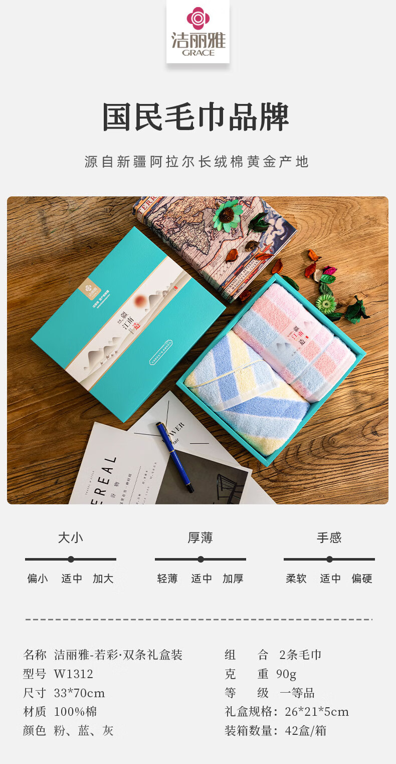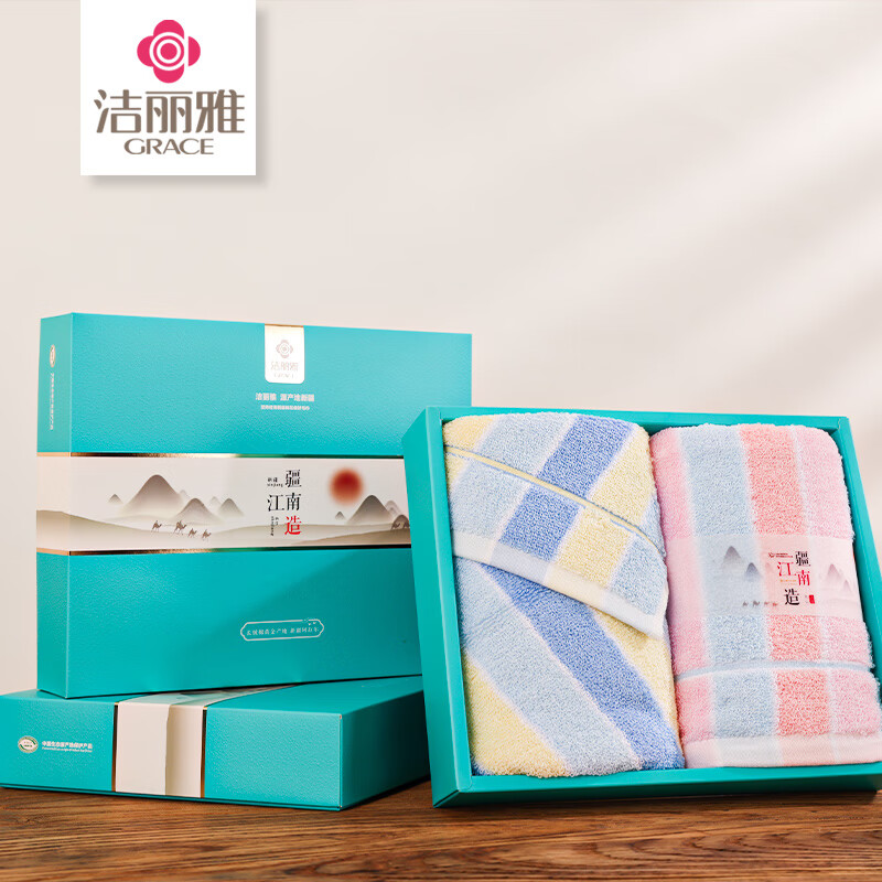 洁丽雅(Grace) 若彩面巾2条装 W1312 33*70cm *90g*2 混色(单位:盒)