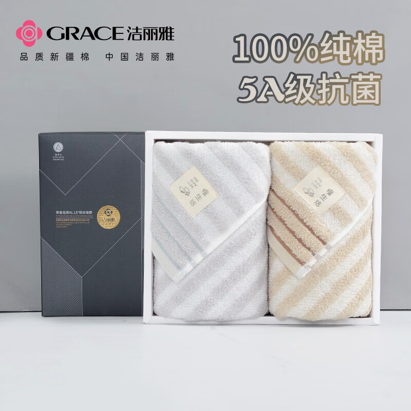 洁丽雅(Grace) 面巾2条装 W0645 74*34cm*110g*2 混色(单位:盒)