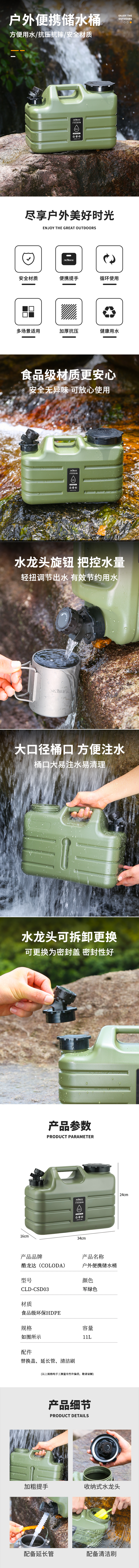酷龙达(Coloda) 户外便携储水桶 CLD-CSD03 11L 军绿色(单位:个)