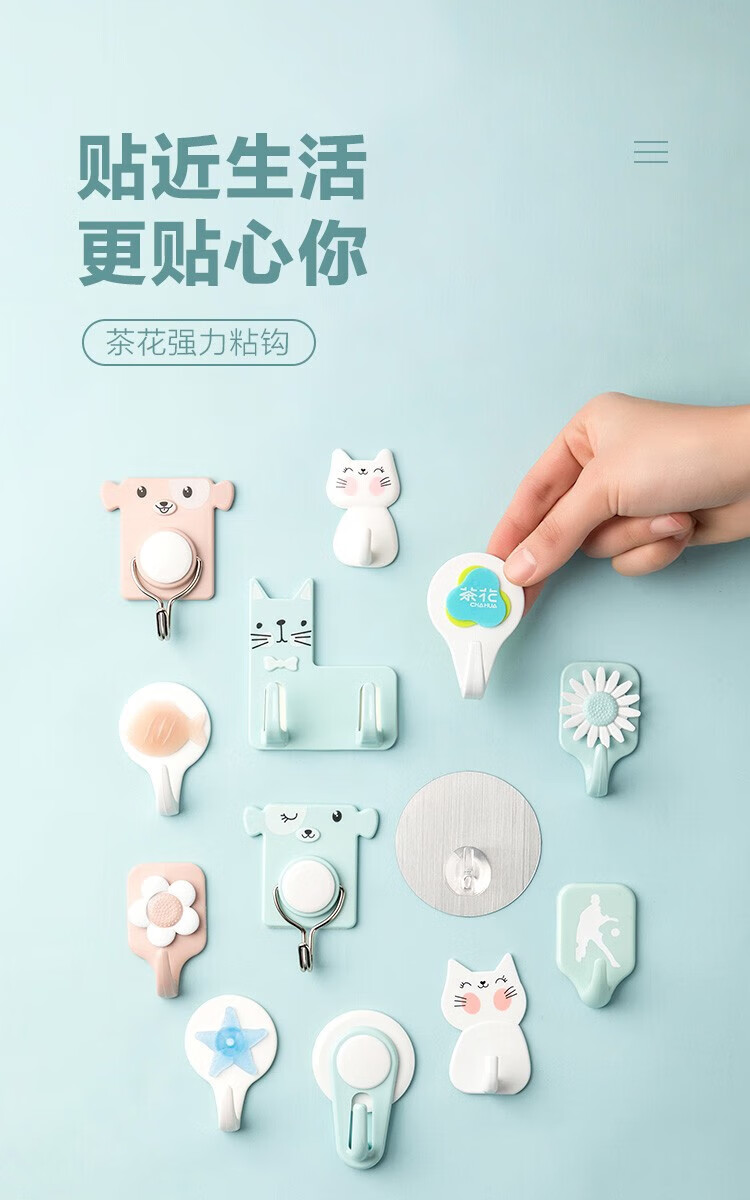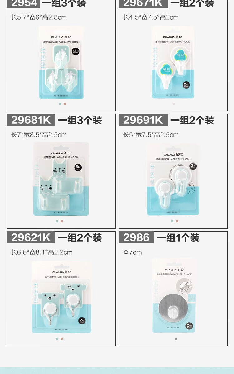 茶花(CHAHUA) 帽式转动强力粘钩 2923 1组2个【5*7.6*2.6cm】 混色(单位:组)